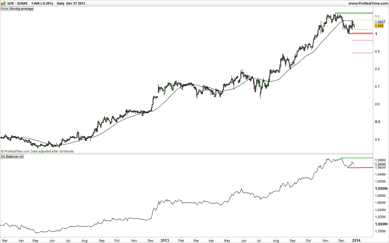 Posso dizer que hoje reforçei na Sonae, pois parece-me que existe um breakout com volume, como eu gosto, e no meu entender vale a pena o risco. Podia aguardar pela confirmação do breakout, mas nesta altura com a força bull que o PSI20 demonstra, não espero por isso.