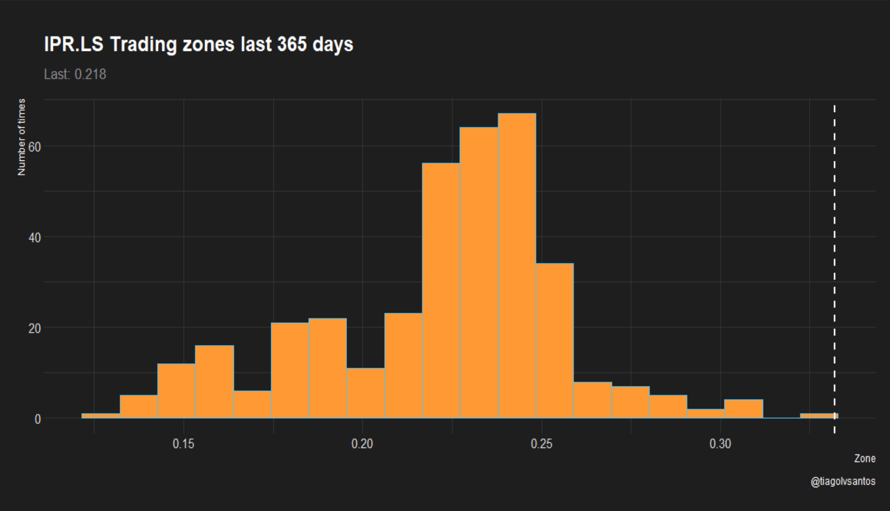 A IPR está a negociar na fronteira dos últimos 365 dias. Estatisticamente o preço, em circunstâncias "normais" tende a convergir para as áreas de maior contagem. Neste caso de 0.20 a 0.25.