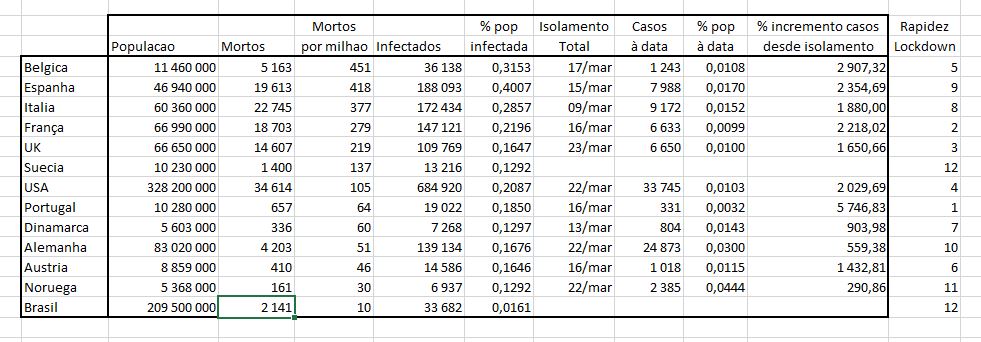 Portugal e Alemanha quando comecaram com o confinamento tinham relativamente poucos casos.