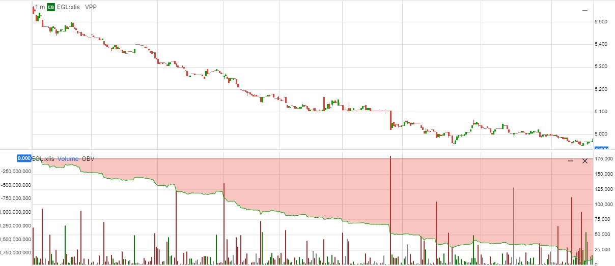 Na minha opinião a Mota está, neste momento, prestes a fechar o padrão Cup & Handle com esse declive descendente e teremos a confirmação quando a neckline for quebrada em alta e a cotação fechar acima dos 5.70€ (será já amanhã?).