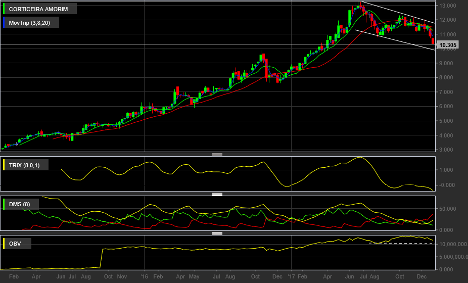 A corticeira está em correcção de curto prazo e já abaixo da MM200 e perto de 2 suportes fundamentais