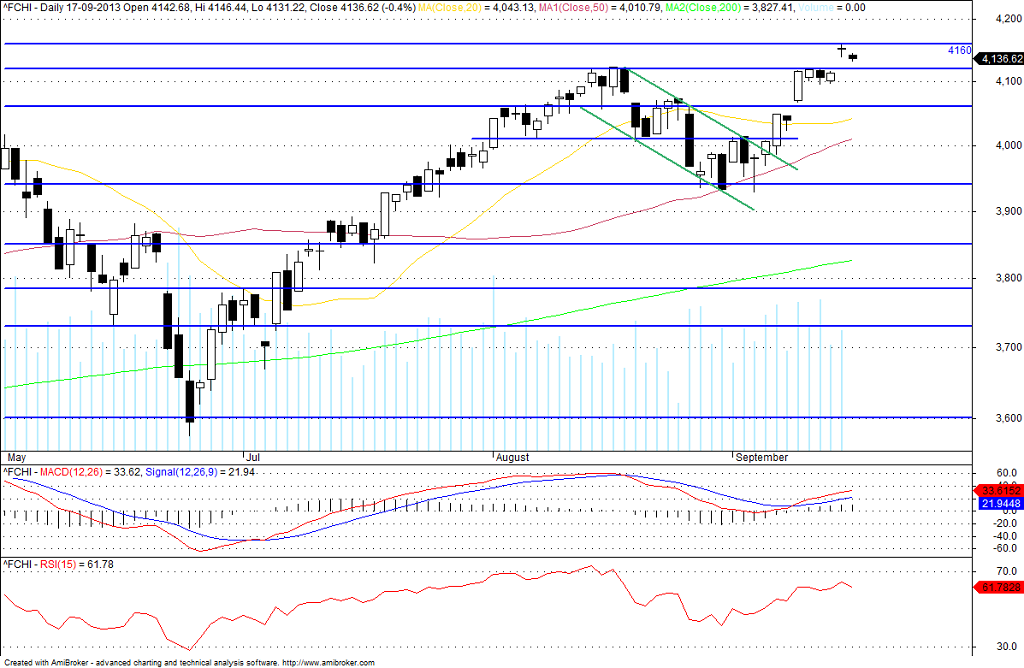 Bem, se realmente o suporte dos 4.100 aguentar, a coisa nem é má de todo. Pode ser que seja o fôlego necessário para ultrapassar os 4300 com convicção!