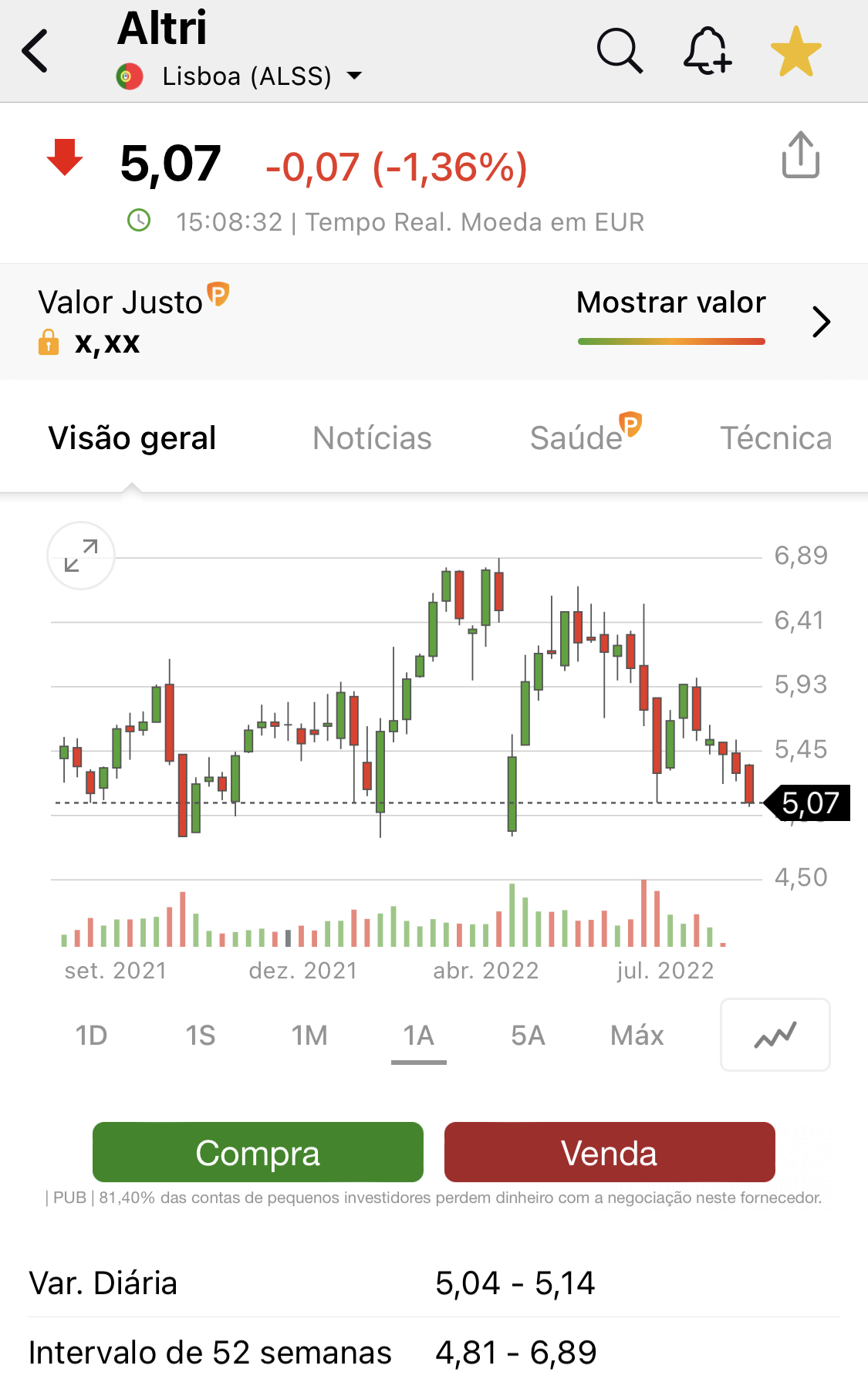 por sinal já estive de “fralda” com a margem bem “descascada” quase em margin call….. isso nos €5,90…