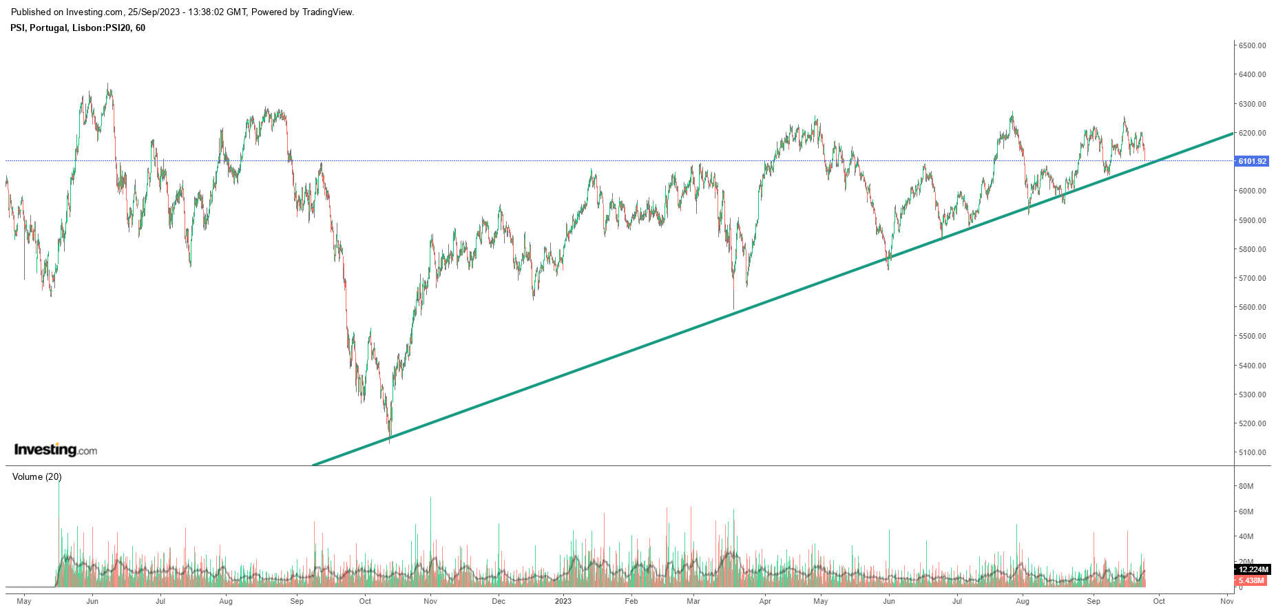 O fim de mês aproxima-se e o PSI está já encostadinho à LTA e apesar do BCP e a força da banca dar algum suporte ao índice tenho dúvidas que seja suficiente e disso é sinal todos os outros componentes estarem a mostrar quebra de suporte, a começar pelo setor elétrico.