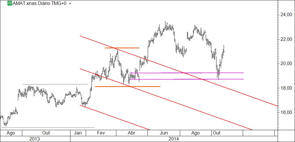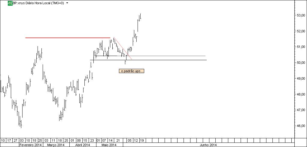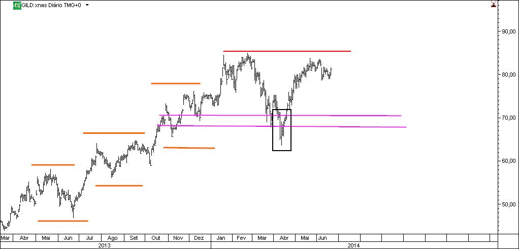 Gild (já mencionado):tendo feito novo máximo, fica confirmado o último mínimo, o que nos poderá dar um local para colocação da stoploss.