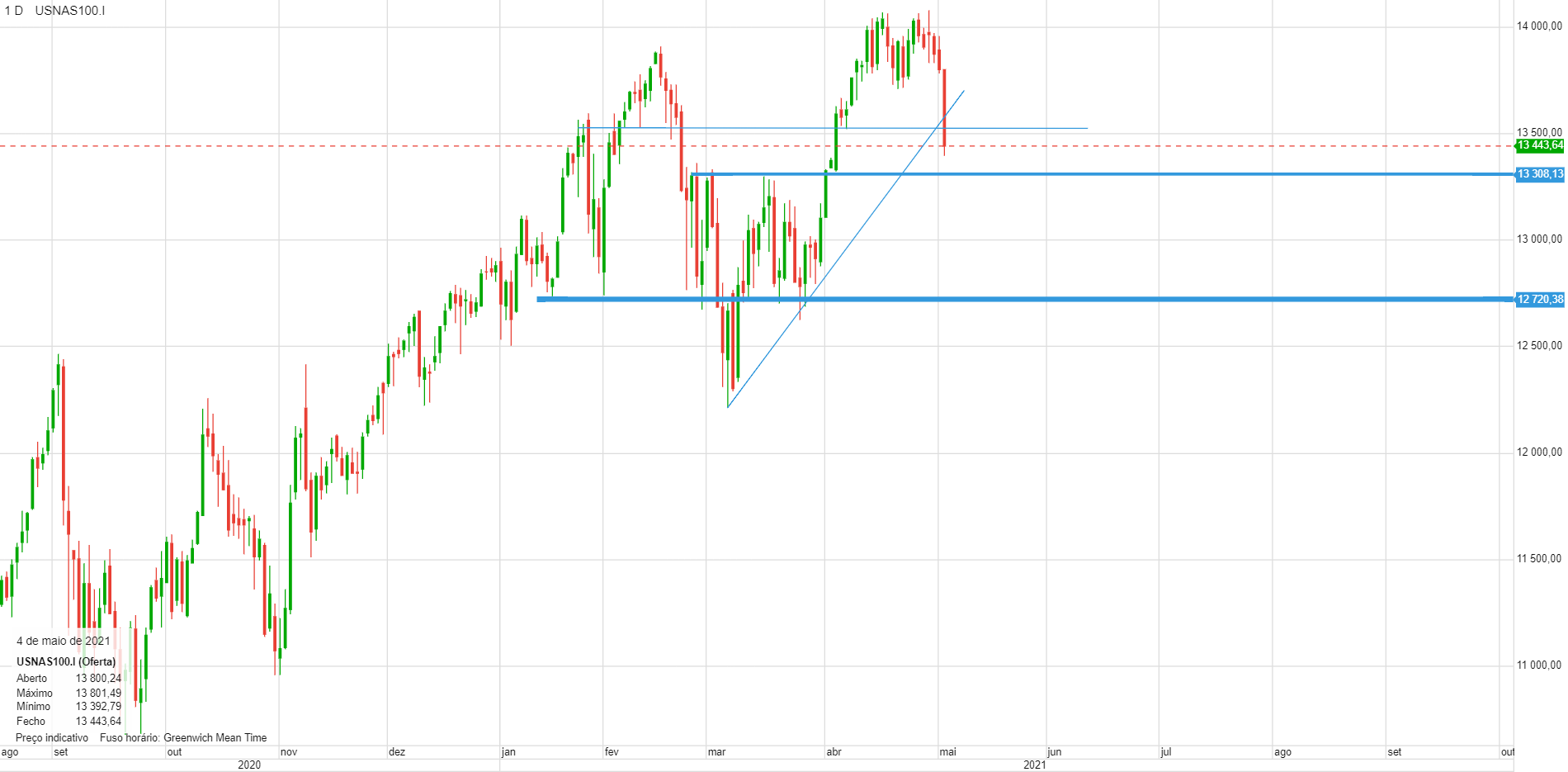 O suporte dos 13500 se confirmar no final do dia que foi quebrado é sinal que as quedas devem continuar.