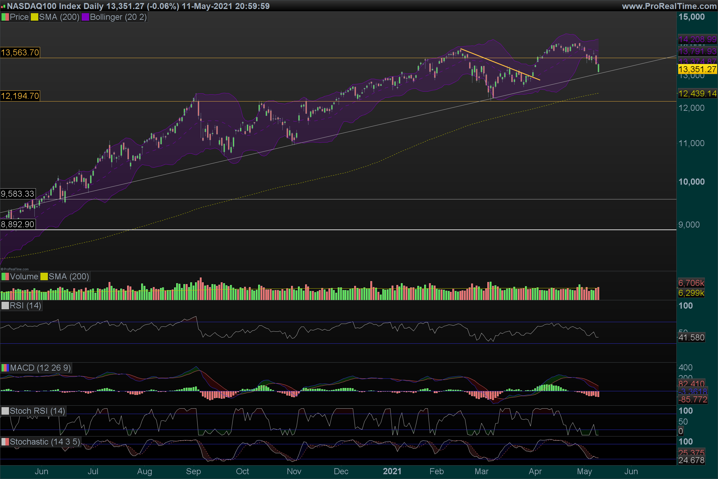 Quebrou a linha que tinha de referência, a menos que feche por cima dos 13100 é mais um sinal importante para os ursos.