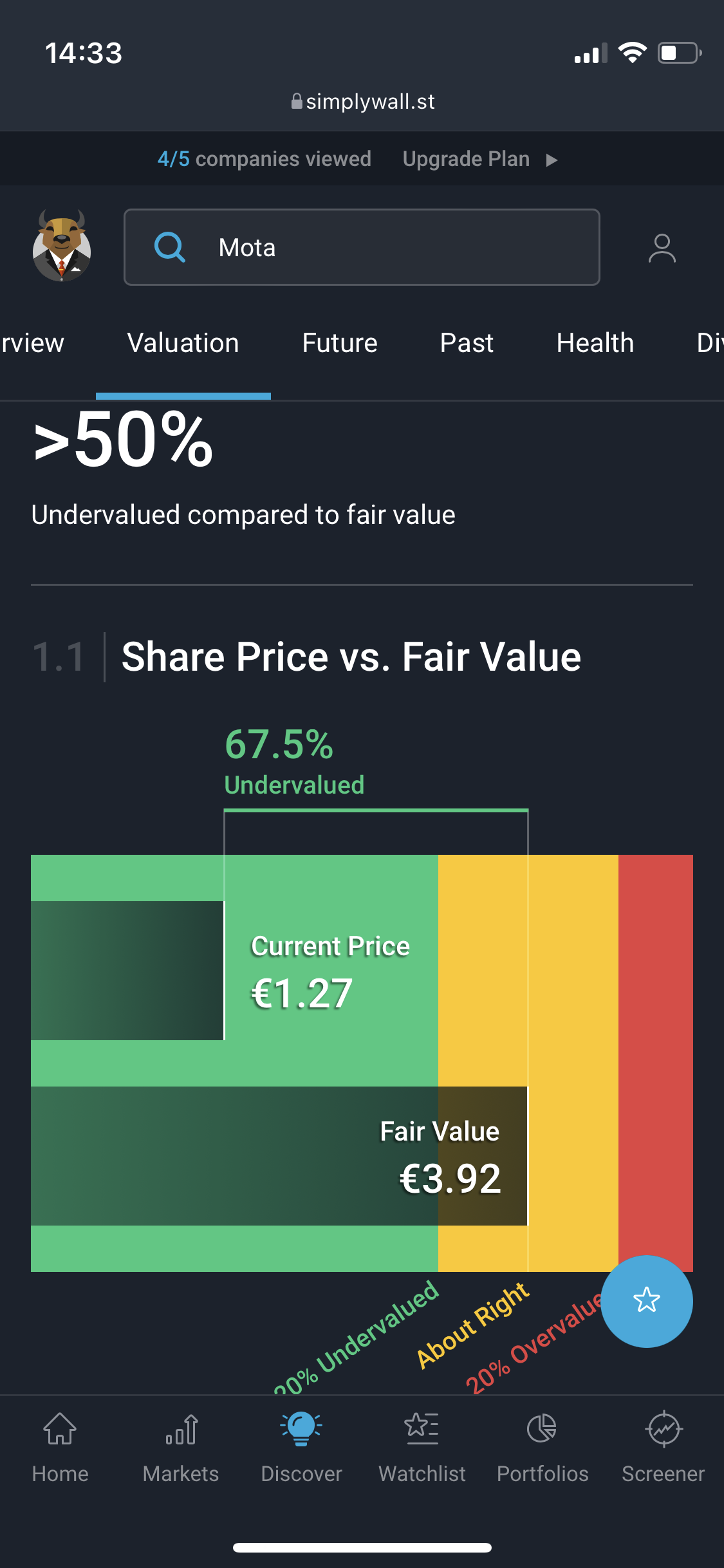 Eles próprios no final da página dizem (por outras palavras) para não levar muito a sério a estimativa do Fair Value.