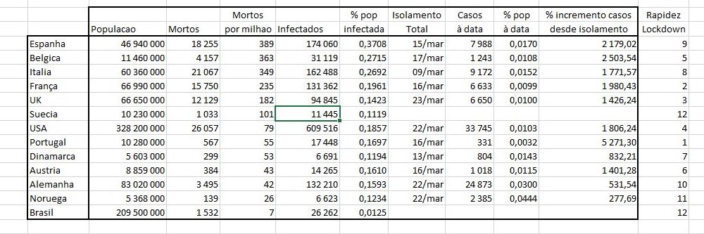 E depois diariamente colocas gráficos comparativos entre os varios paises, colocas dados de paises diferentes e tiras ilacoes sobre a evolucao de uns e de outros, etc ...