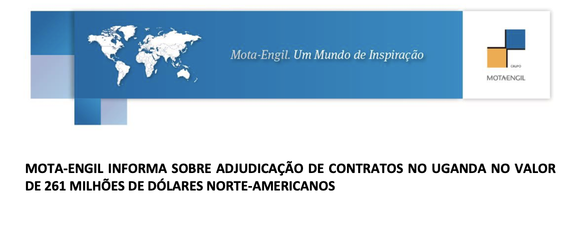 Mota-Engil ganha contratos de 261 milhões de dólares no Uganda