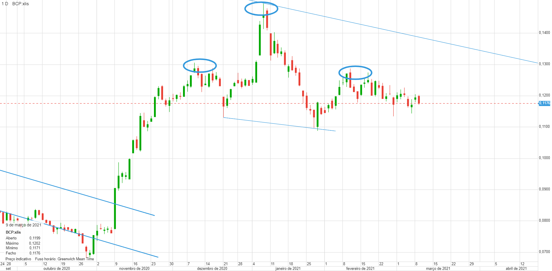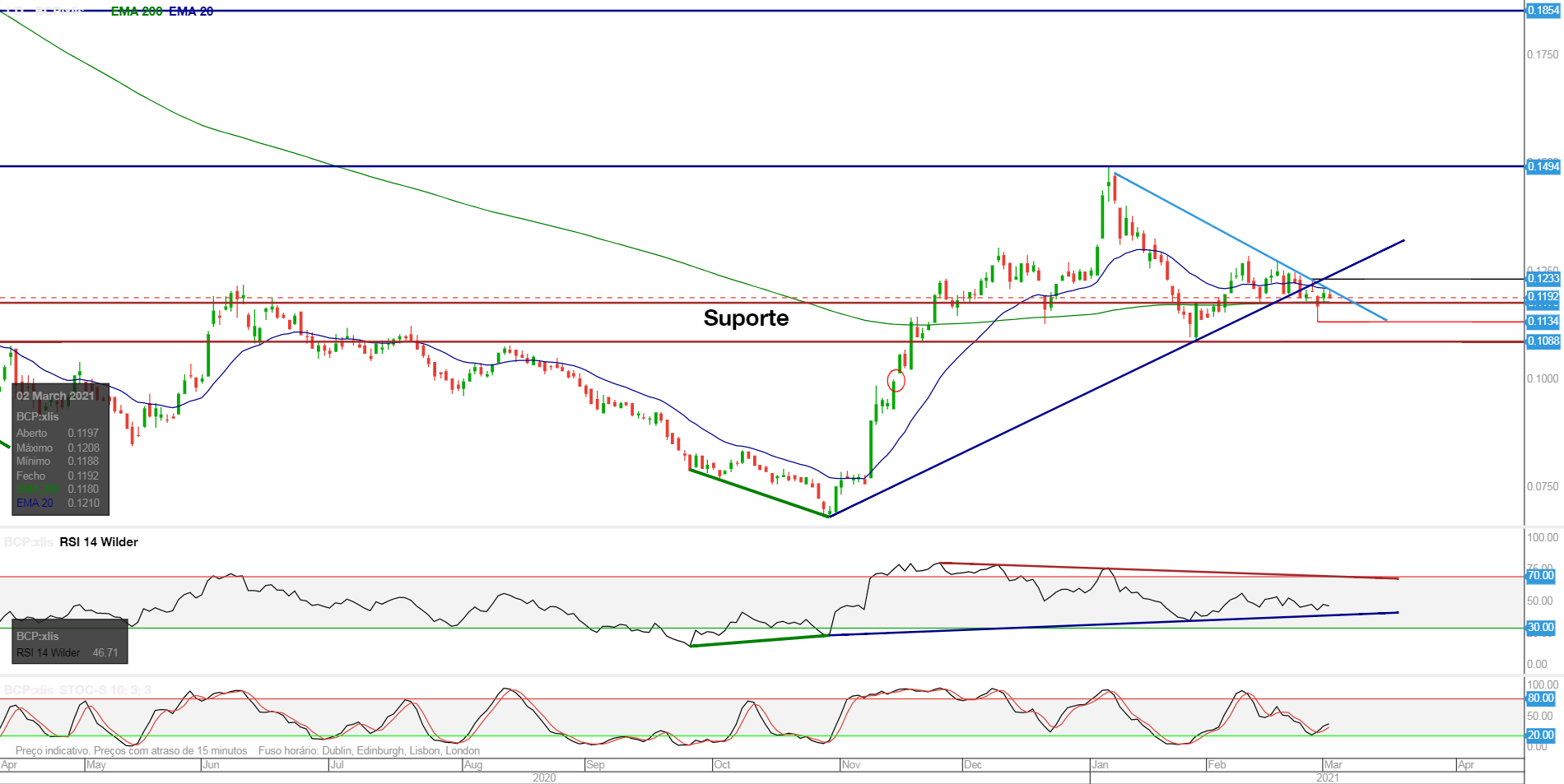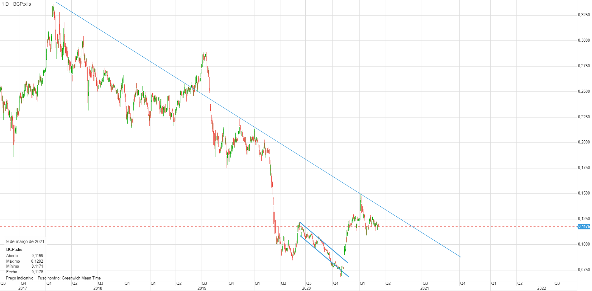 Eu quando olho para o gráfico do BCP, só me lembro de entrar curto (já o fiz algumas vezes nos últimas semanas, mas bate e foge). Nada me dá animo a entradas longas.