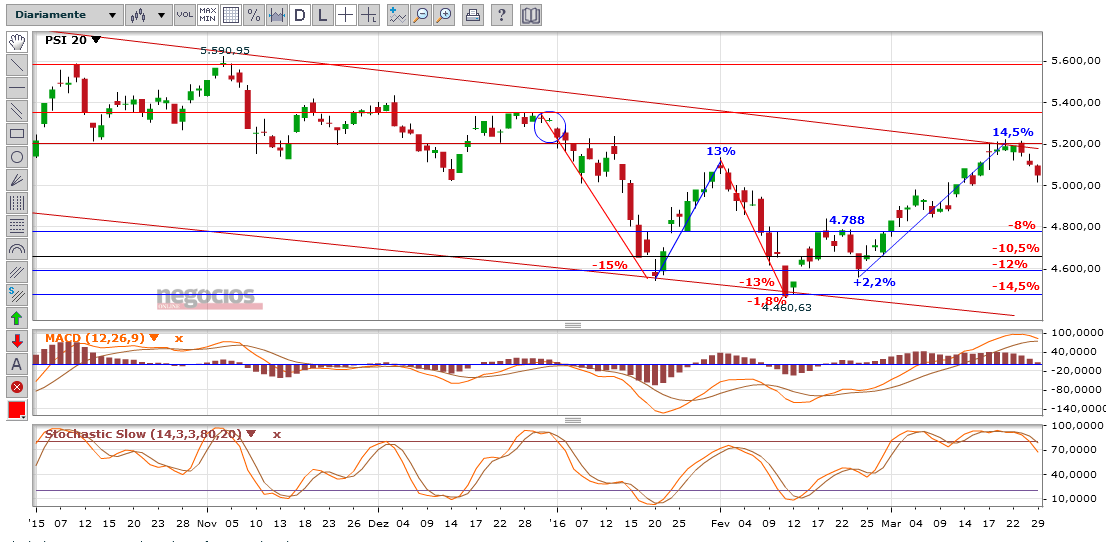 c) Temos um suporte a: 4.788, se ficar por aqui, a correcção será de 8% ( praticamente 3,5% acima do mínimo anterior )seria um bom sinal. Vamos esperar para ver mas já não seria sem tempo.