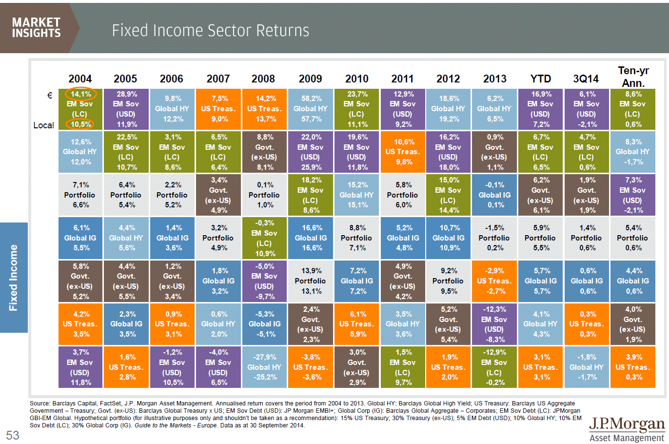 Da versão da Europa do J.P.Morgan Asset Management - Guide to the Markets: