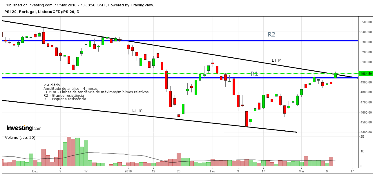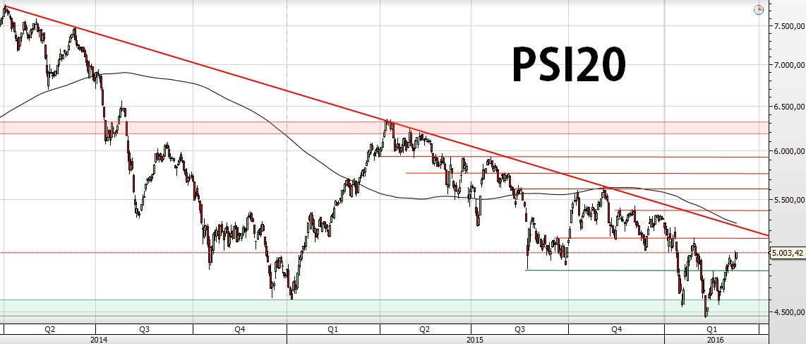 Tal acontece uma vez que quer o oil, o spx e o psi20 estão muito perto das suas resistências descendentes... Até se observar uma quebra das mesmas continuo pessimista