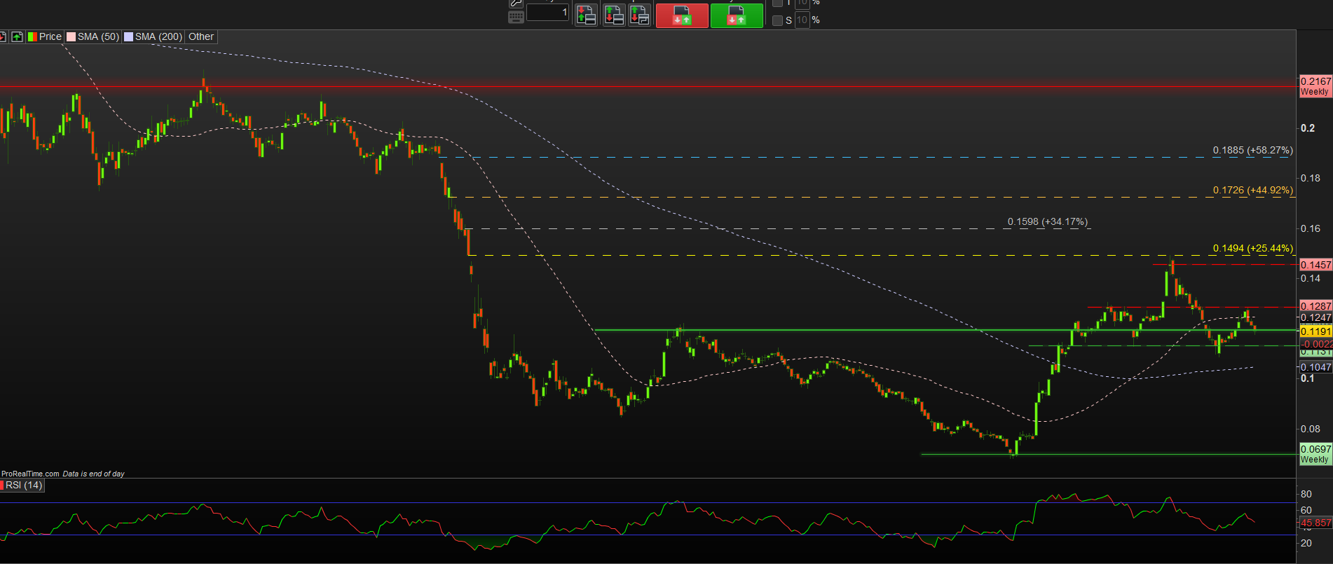 Agora é 0,1188€ (midpoint do swing anterior), com um "retracementzinho", para continuar a cair para ir testar o fundo de novo nos 0,1088€.