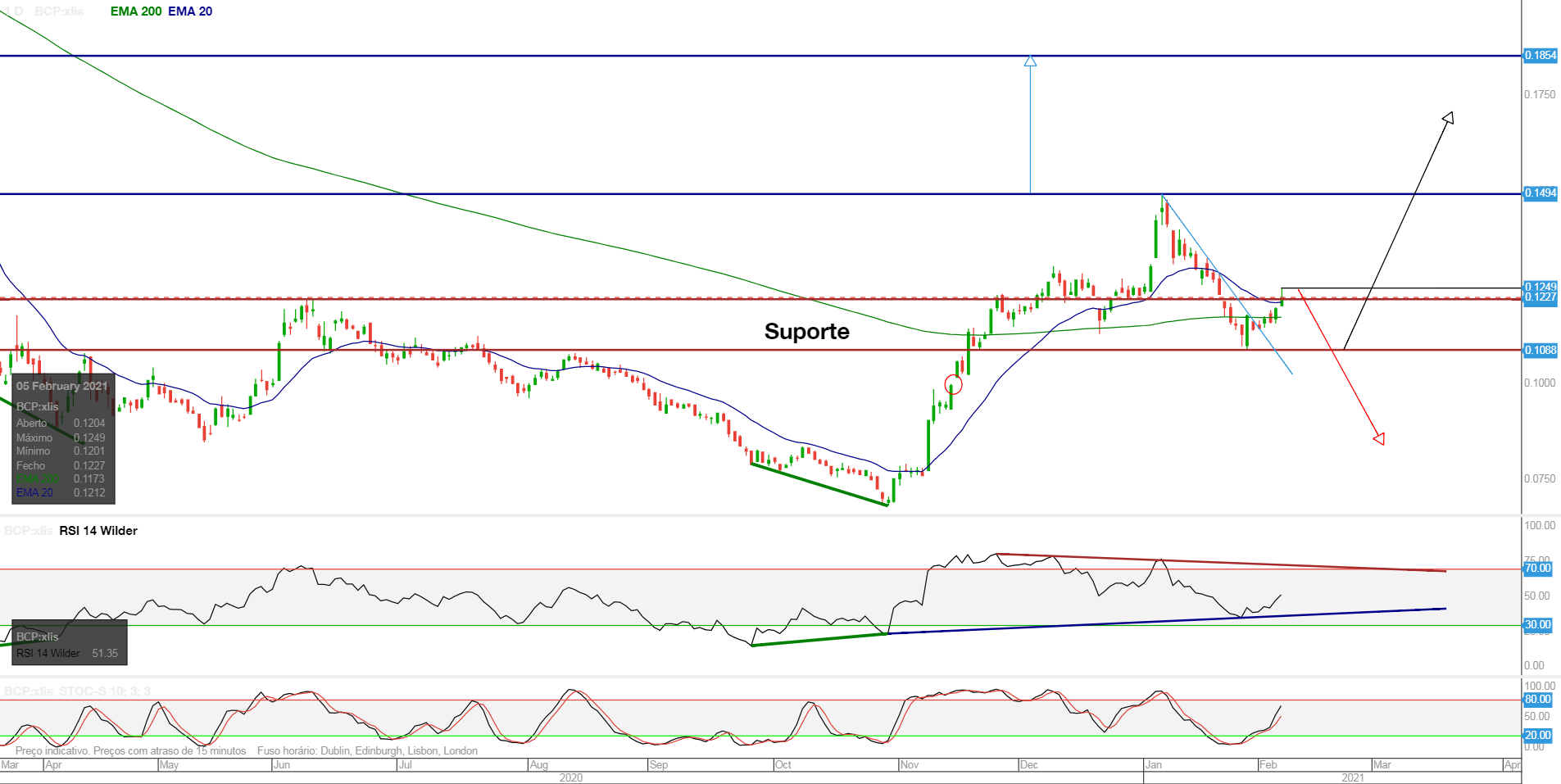 Eu acho que há uma possibilidade do BCP chegar aos 0.1291€ neste swing. Alguém por aí que consiga validar isto tecnicamente?