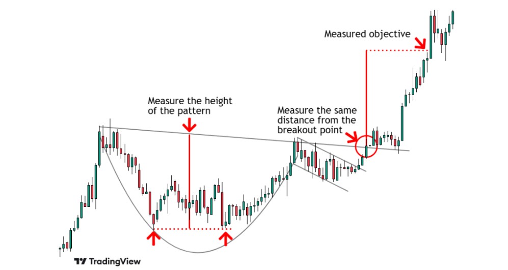 No entanto, pode-se verificar um ligeiro declive descendente no topo da "cup", conforme ilustrado neste site que se debruça sobre as estratégias de trading desse padrão.