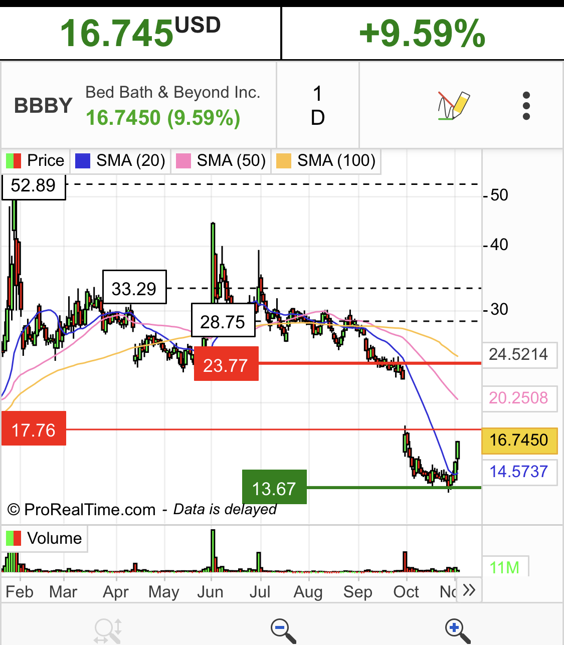 BBBY no pré market a bombar 60%.