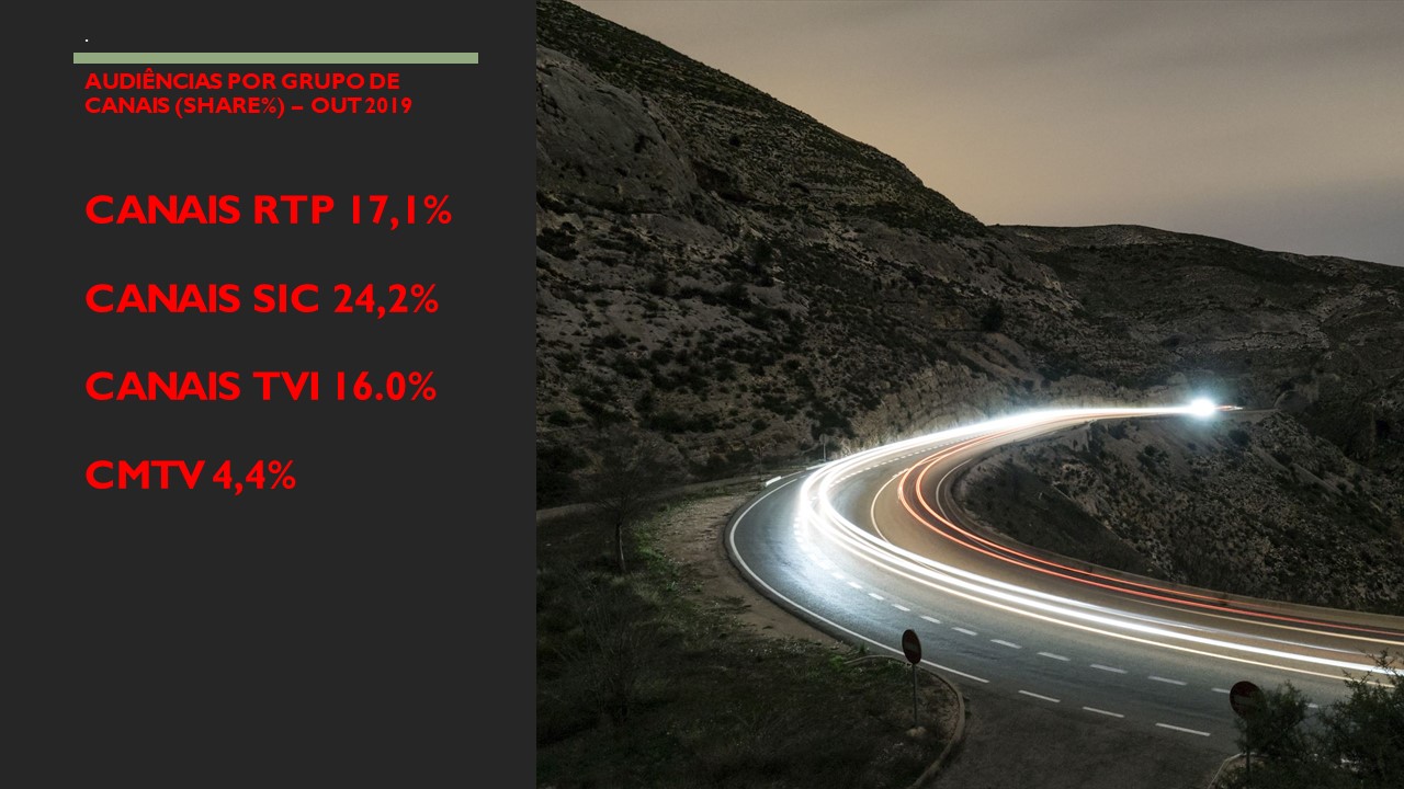A SIC consolidou em outubro a liderança de audiências e é a estação mais vista no ano de 2019. A estação da IMPRESA terminou o mês de outubro a liderar com 20.0% de share contra 13.9% de share da TVI e 13.0% de share da RTP1, aumentando a distância para a TVI de 5.3 p.p. para 6.1 p.p.. A SIC lidera há 9 meses consecutivos e lidera no ano de 2019 com 18.9% de share contra 15.9% de share da TVI e 12.3% de share da RTP1.