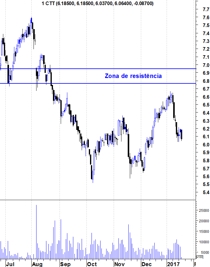 Deixo aqui os meus gráficos actualizados dos CTT. Enquanto a acção não conseguir quebrar, consistentemente, a zona de resistência entre os 6,75 e os 6,95 euros, mantenho-me de braço dado com os ursos.