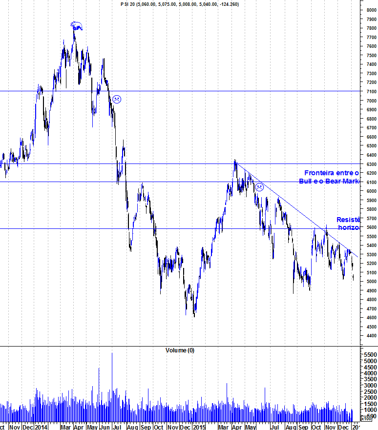 Gráfico de 2016 muito parecido ao que ocorreu em 2015 descer ate finais de janeiro e em fevereiro inverter espero que aconteça o mesmo este ano mas que passe a barreira do bear e bull market