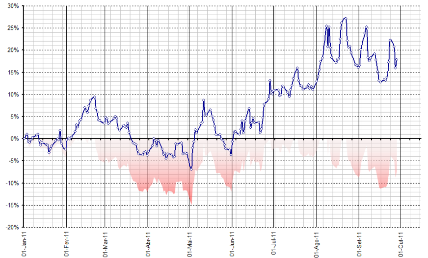 No entanto, com estes solavancos todos, coisa também não tem sido tão dramática: os drawdowns nunca ultrapassaram os -15% (coloquei-os no gráfico; o sombreado vermelho aumenta com a intensidade da queda. Está bonito... não está?!:mrgreen: )