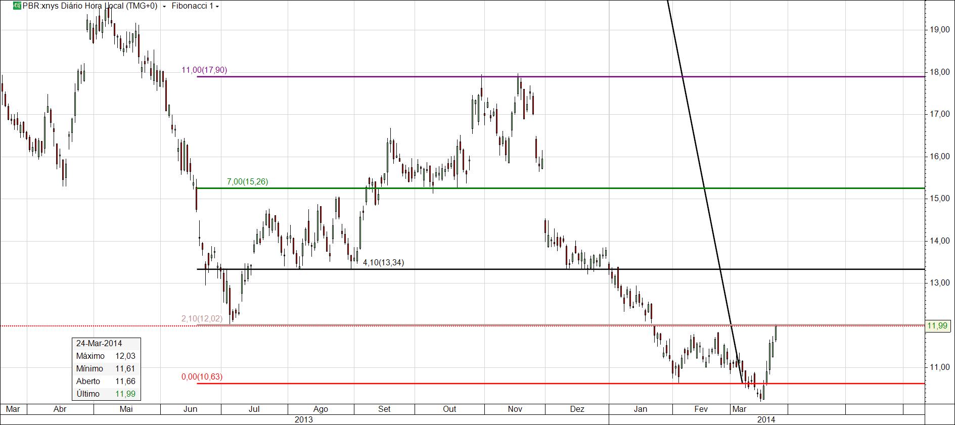 A PBR está indo vamos a ver, mas no gráfico semanal a tendência não alterou-se, ainda!