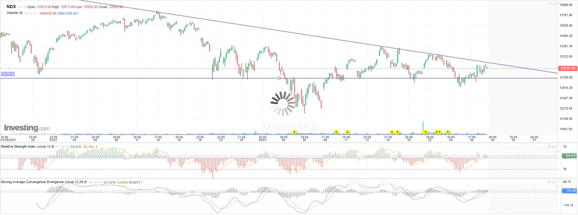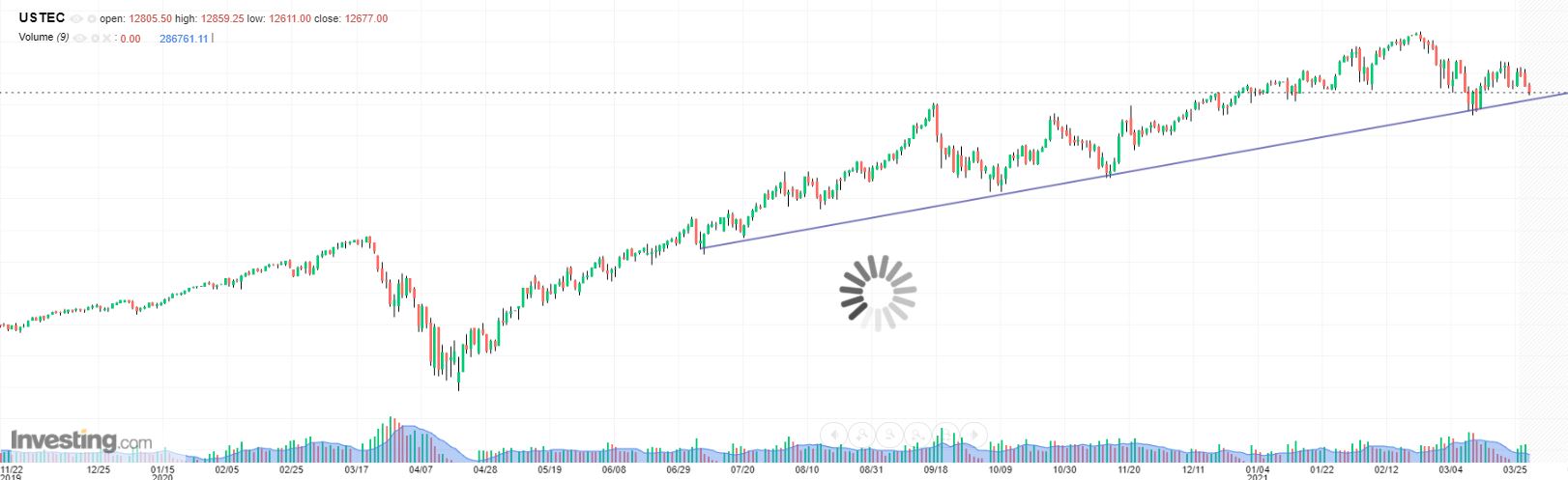 É outra possibilidade, o investing é muito impreciso por isso tem de se lhe dar a devida margem mas um fecho abaixo dos 12850 deve ser suficiente para animar os ursos.