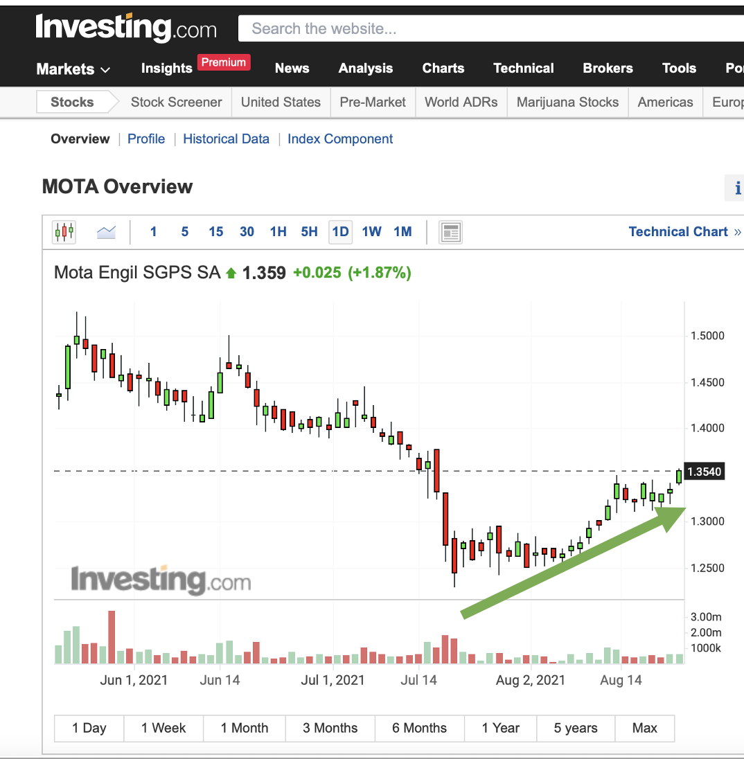 agora das duas uma: ou a Mota-Engil vem a subir há cerca de dois meses e então cabe a pergunta: Onde está o padrão?