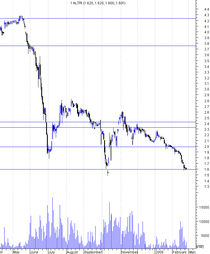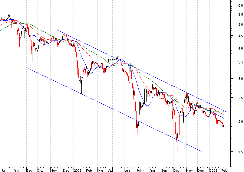 Bom, lá foi ela ao tapete (suporte), aguentou-se e tentou reagiar mas os ventos não estavam de feição, a continuar assim o sentimento do mercado parece dirigir-se para 1.90€, se alguém puder actualizar o gráfico fico agradecido.