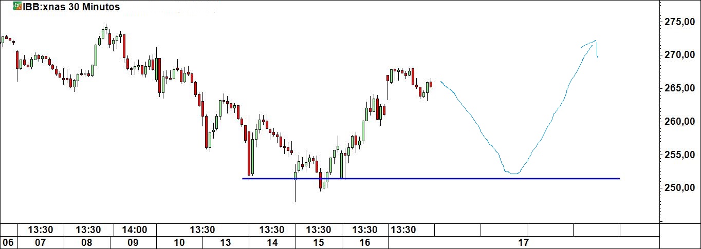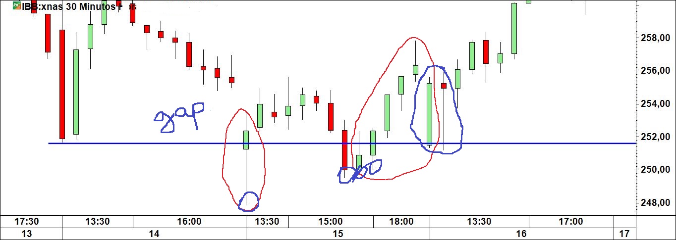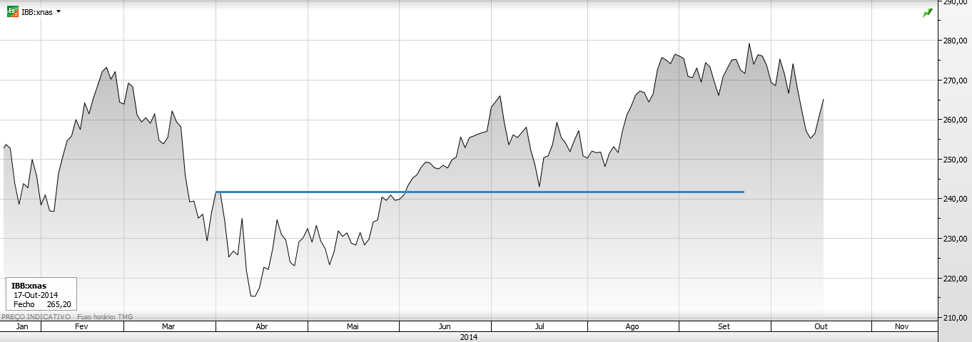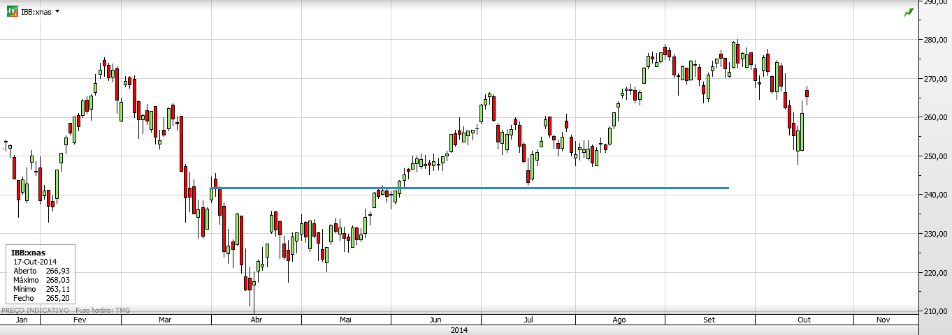 Tu na altura apresentaste um gráfico de um ETF da biotecnologia aonde traçaste uma linha de suporte provável que estava apenas assente em 2 pontos, o que, como sabes, é muito pouco para se estabelecer uma linha de suporte ou de resistência.