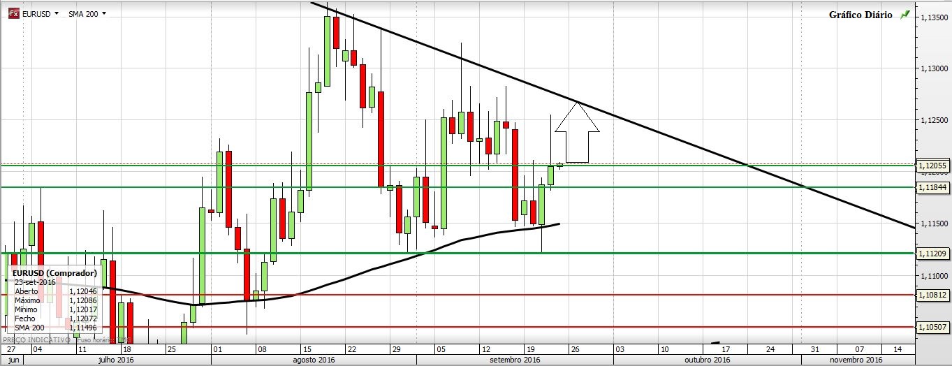 Ontem depois da Yellen falar, entrei longo com a quebra em alta dos 1,119.
