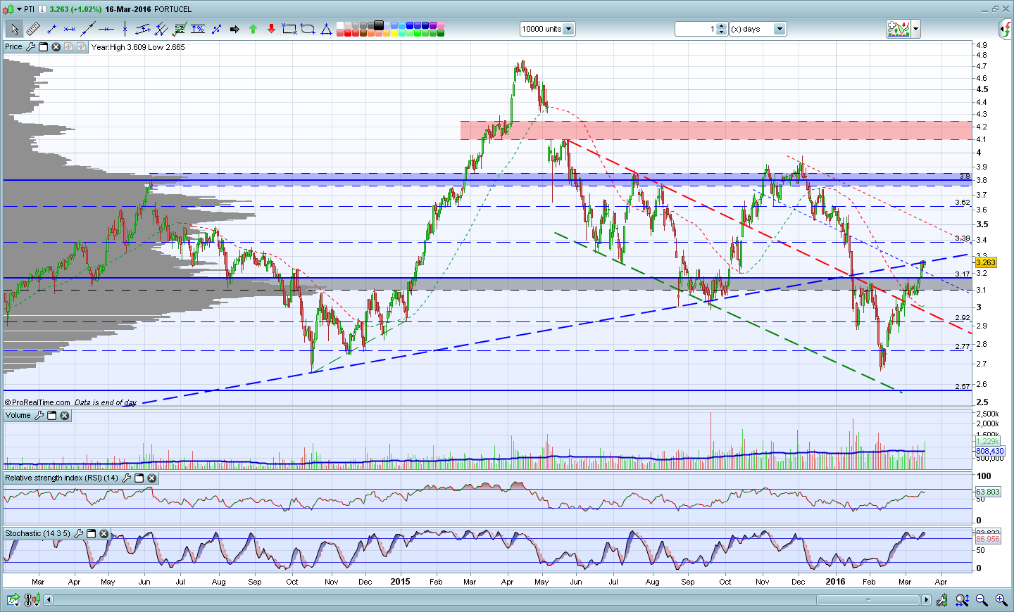 Atenção à Portucel está a ultrapassar a resistência dos 3,3. Se conseguir tem projecção praticamente "limpa" até aos 3,9.