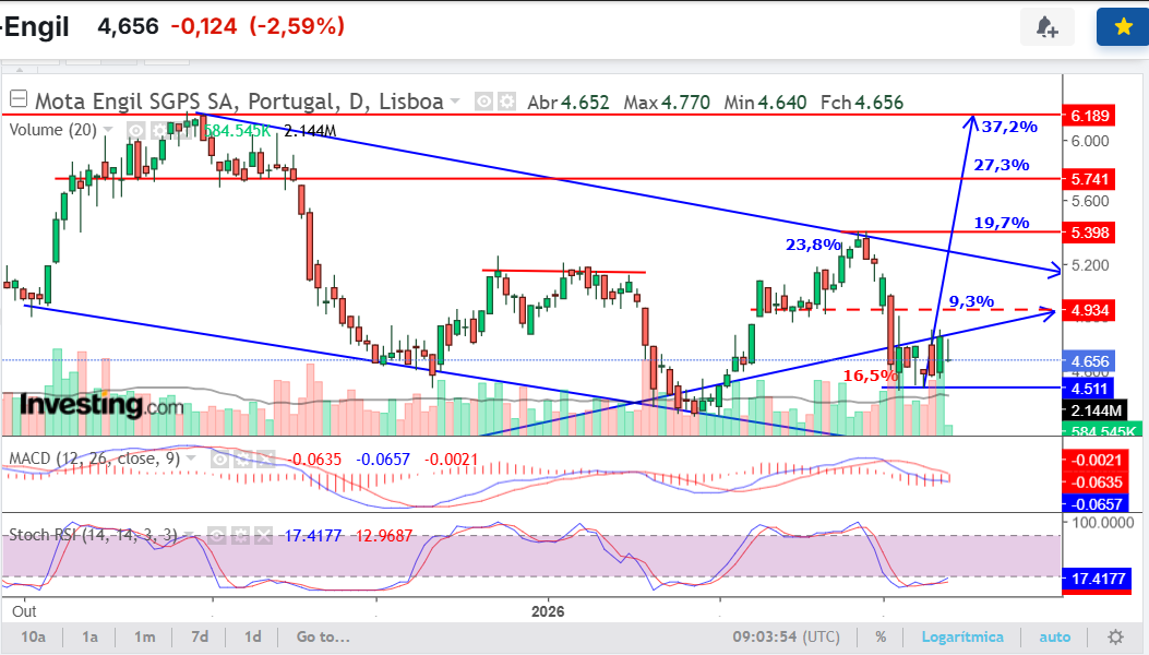 Conto com um ataque aos 4,80 mas não acredito nos 5,00€ sem que a guerra termine.