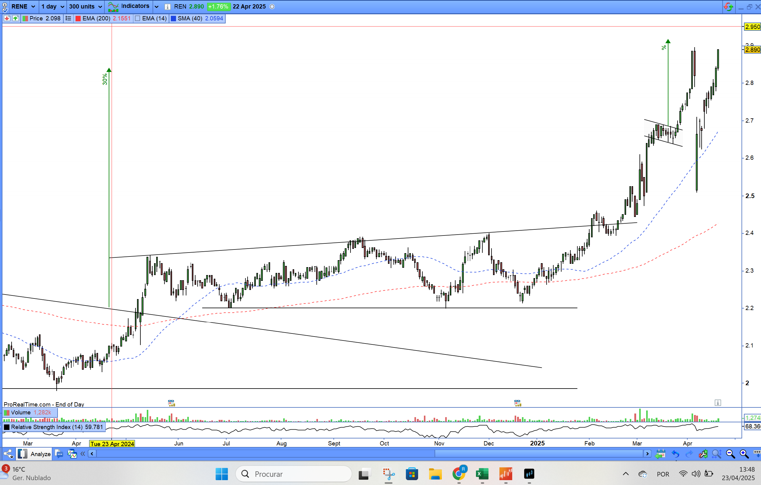 Na minha opinião pessoal, apesar de parecer algo irrealista, vejo a cotação com potencial de furar as resistências nos 2,90€ antes do pagamento do dividendo mas tudo dependerá do contexto de mercado das próximas semanas, pelo potencial de encaixe substancial com a eliminação da cese e perspectivas favoráveis do negócio. Os grandes acionistas deverão estar muito confortáveis na REN e parece me que quererão reinvestir os dividendos.