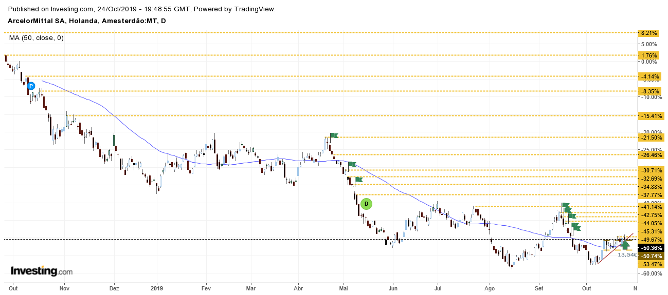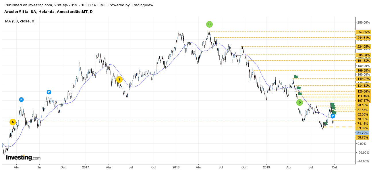 O mês passado estive para investir na Arcelormittal, mas estive na dúvida entre esta e a Bayer, por fim acabei por entrar na Bayer (DY >, elevado preço de desconto devido às condenações que nao acredito).