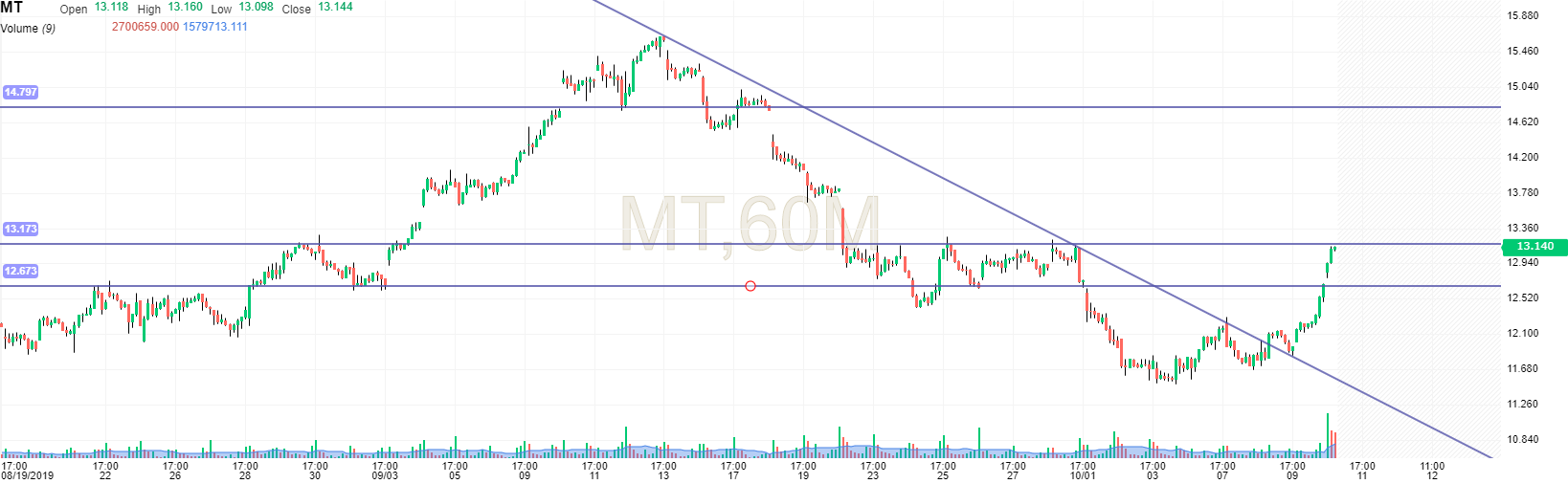 Ja vai em 13.32. Penso q terá quebrado essa pequena resistência.