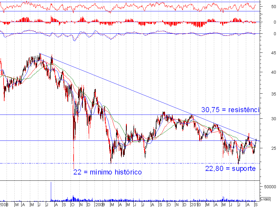 Bem, aqui fica uma pequena actualização: vejo uma LTD que vem desde o Verão de 2008 e que ainda não foi vencida (notar uma tentativa falhada de ruptura na segunda semana de Agosto).
