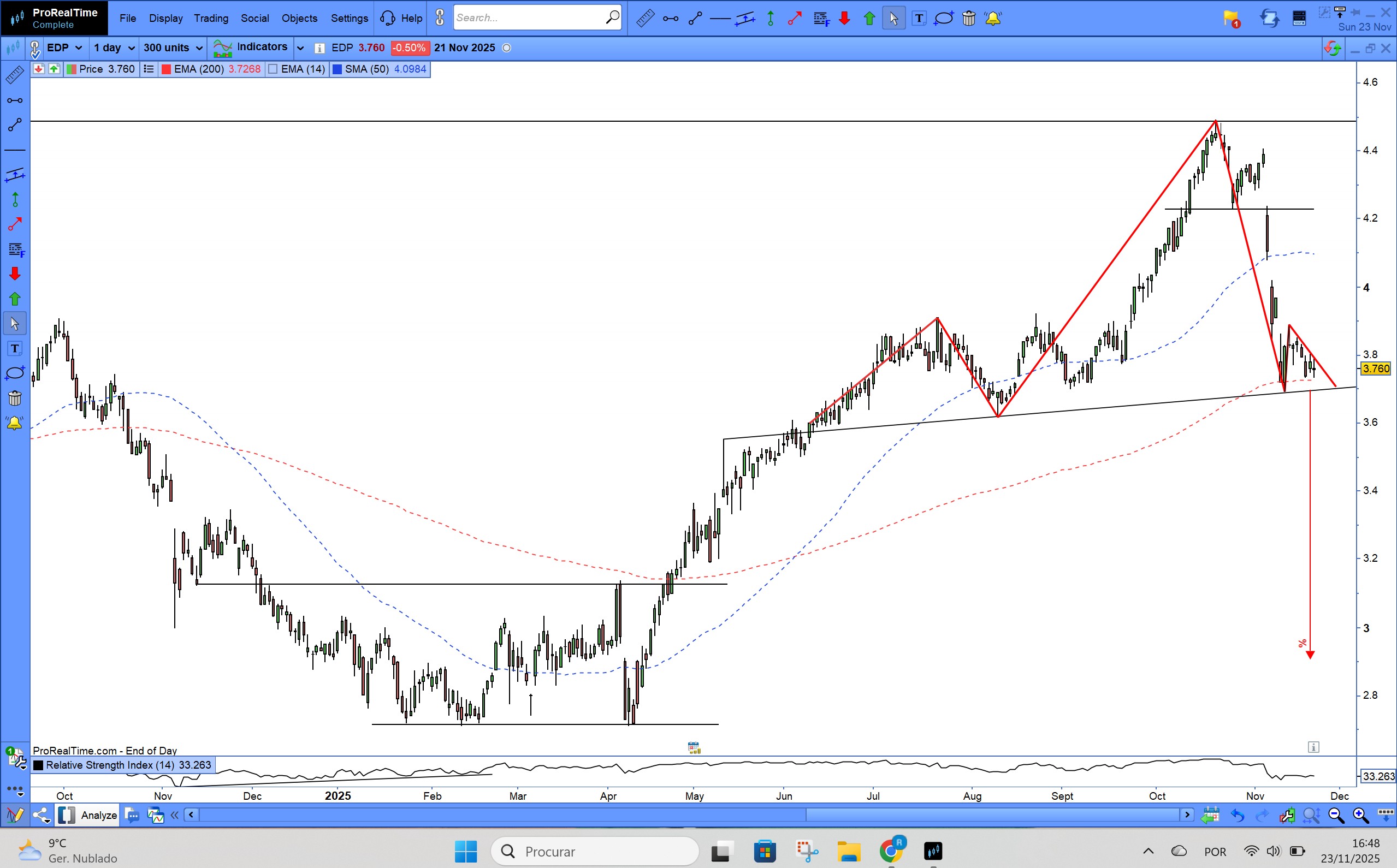 Entretanto um pouco esquecida nesta lateralização, mas a arrebitar e talvez a consolidação esteja feita para breakout dos 3,90, que a poderá levar pelo menos a fechar o gap dos 4,10.