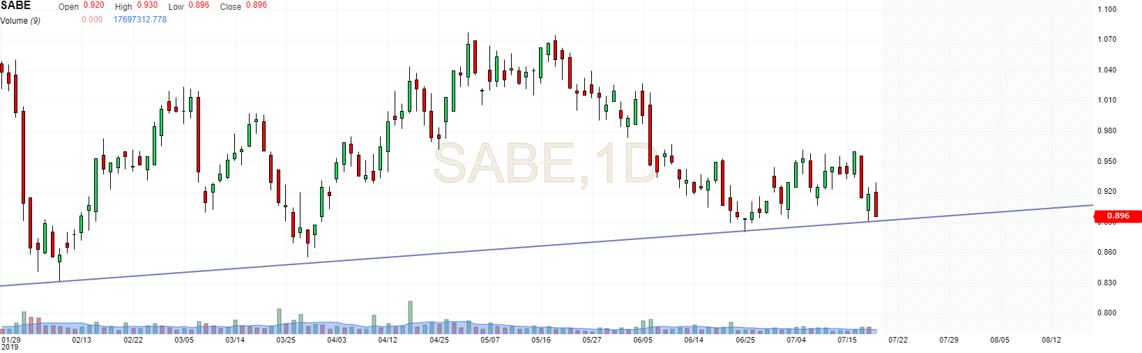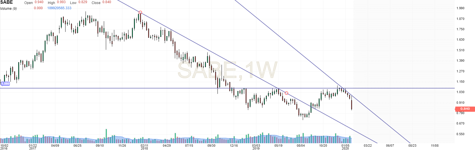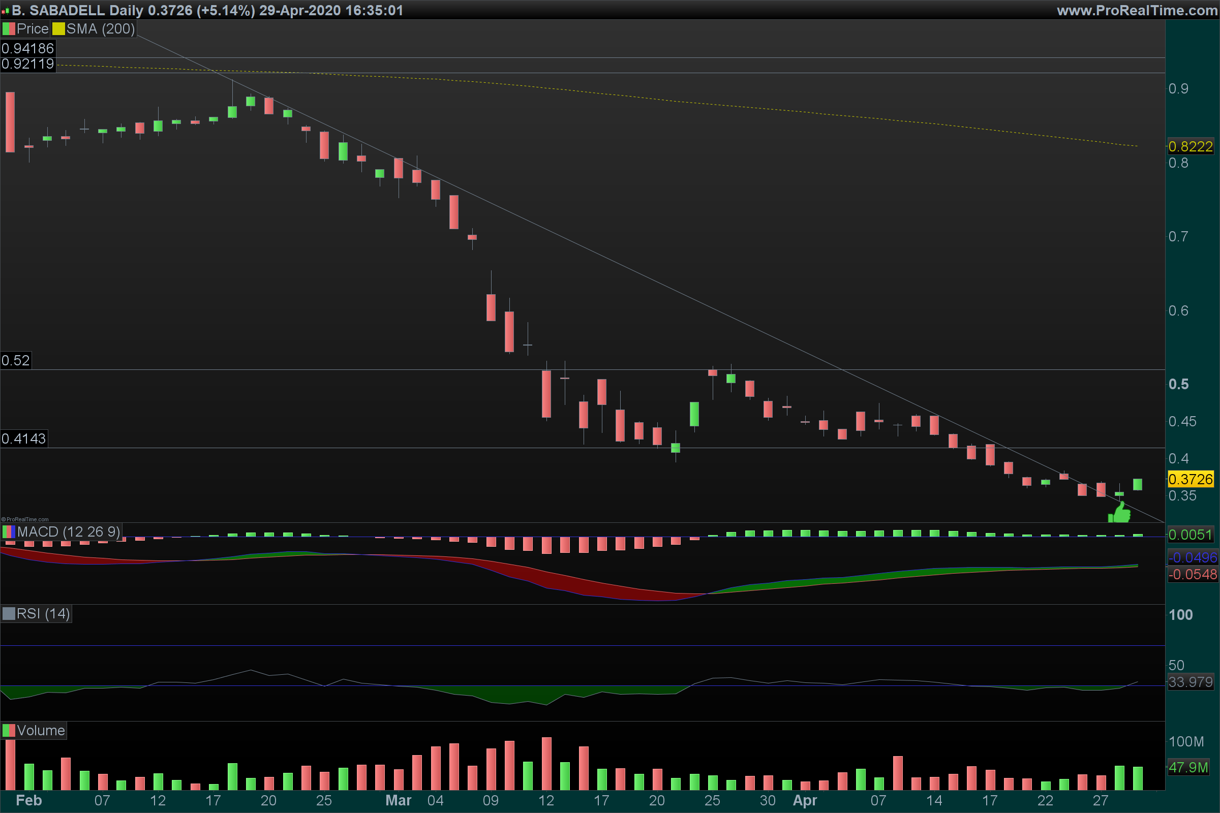 O Sabadell falhou redondamente no ataque à última barreira ao bull market. A ter em atenção reacções à antiga LTD quebrada, mas tem todo o aspecto de as quedas continuarem.