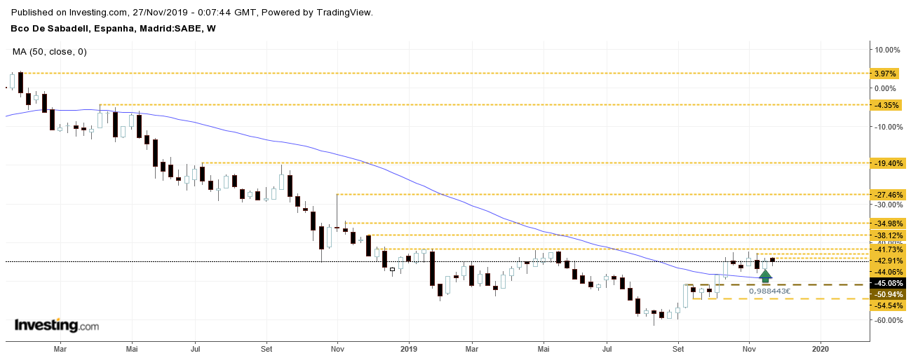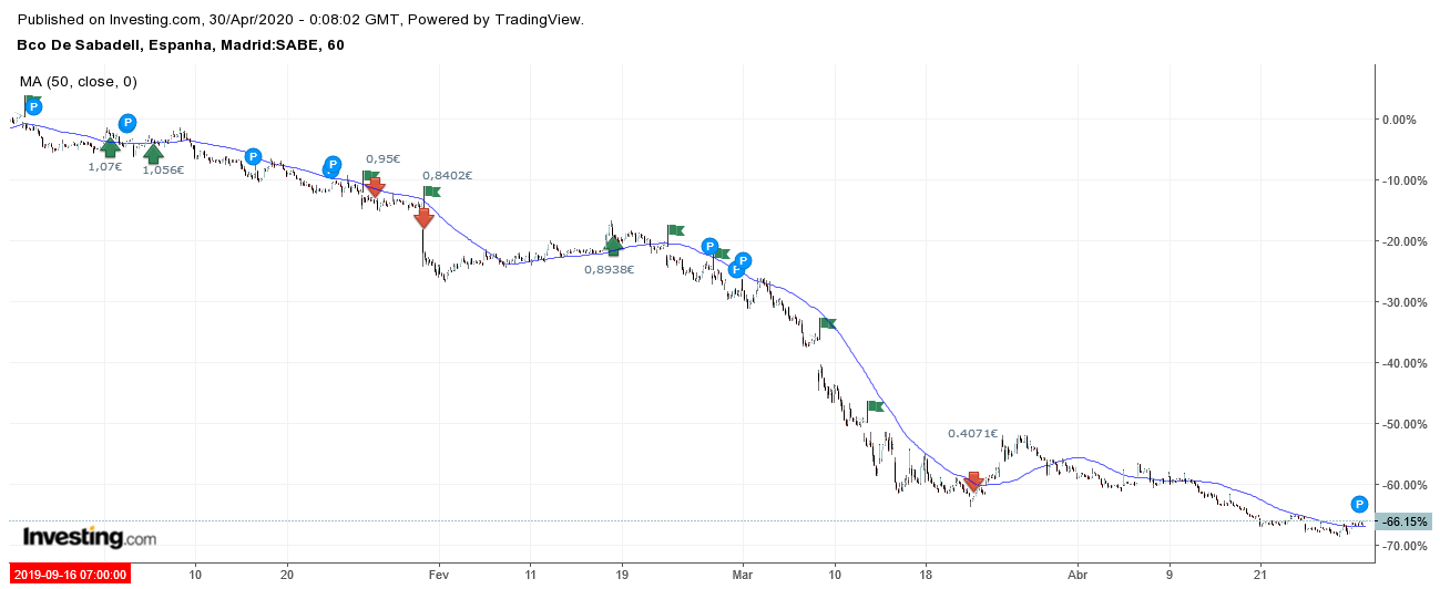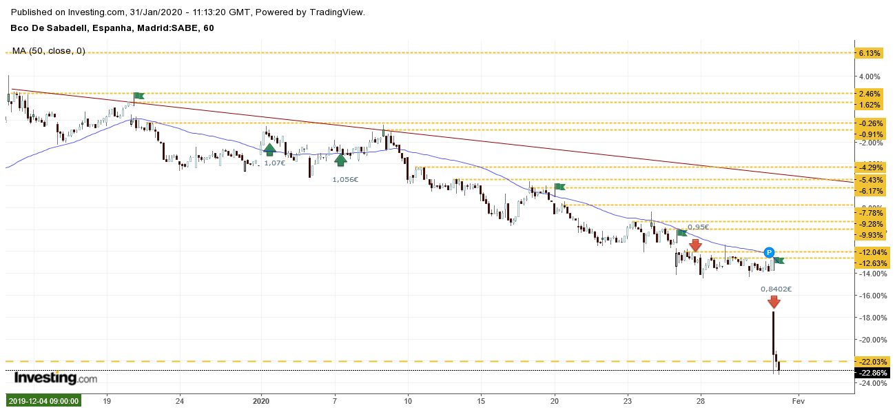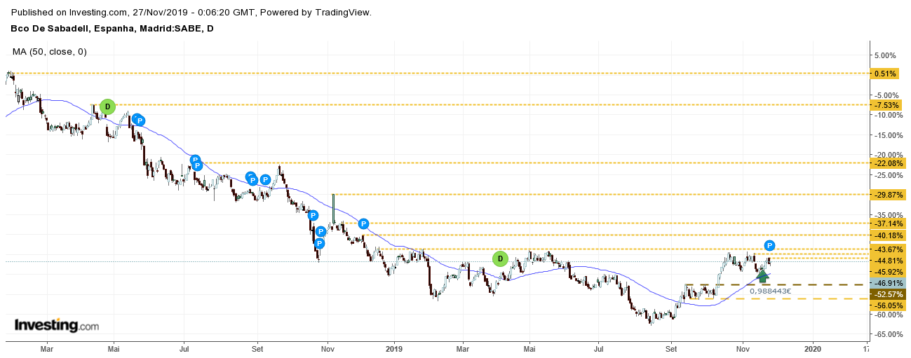O Sabadell è um desses casos. A grande questão é se aguenta sem fazer novo mínimo, ou se quebra o mínimo e fica literalmente em queda livre.