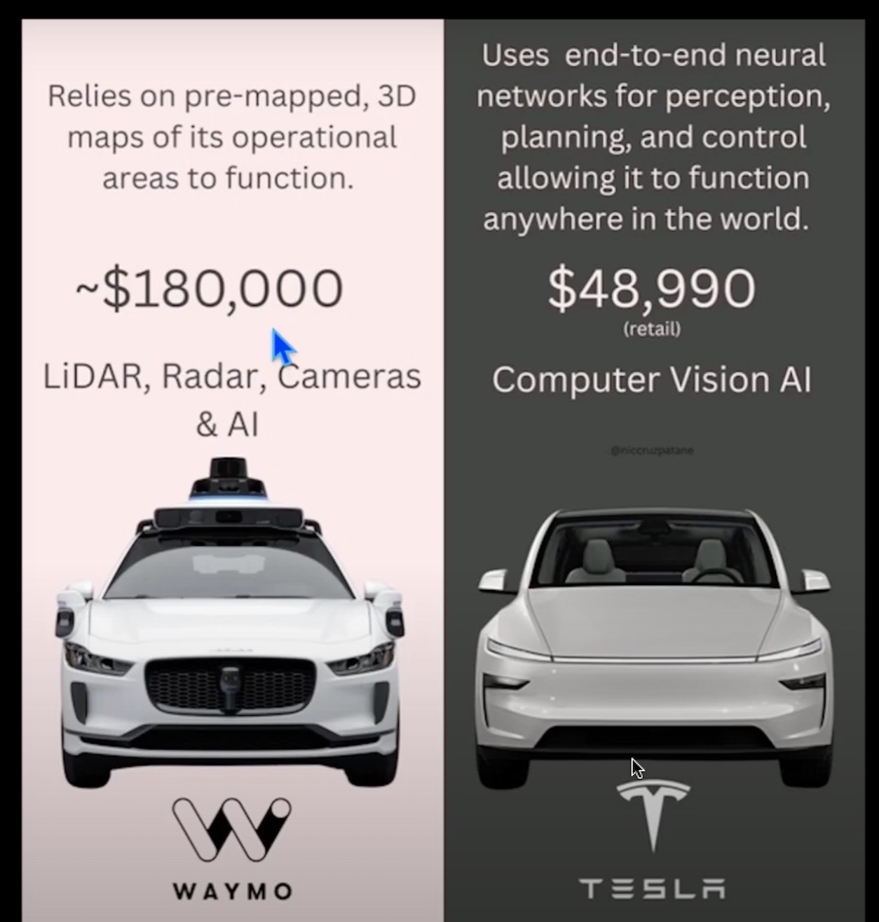 Quando se fala em autonomia, os media falam em quem ? Waymo e outras companhias que nem sei o nome. Outro dia a fazer zapping deparei-me com uma reportagem na sic negócios sobre autonomia...uma empresa não me lembro nome dizia ser pioneira em autonomia e que fazia testes no country side inglês...entetanto via no YouTube carros da TESLA em FSD a conduzir em zonas rurais na China por caminhos estreitos e sinuosos e não eram a testar. Era apenas a última versão FSD num qq carro particular TESLA