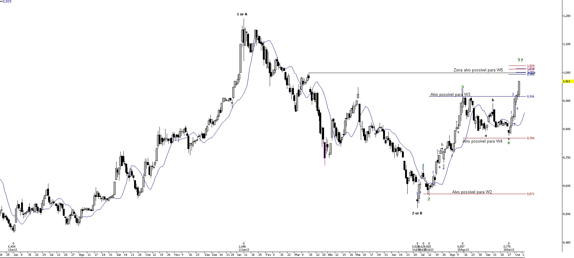 LightKey Escreveu: Peço desculpa, mas não conheço bem a teoria das Elliot Waves pelo que não percebi toda a sua resposta. Em que medida a W3 vai afetar a extensão da W5 ? Considera mais provável a cotada parar na zona dos 0.92 ou 0.95 ? Ou nesta teoria existe probabilidade semelhante para os dois cenários?