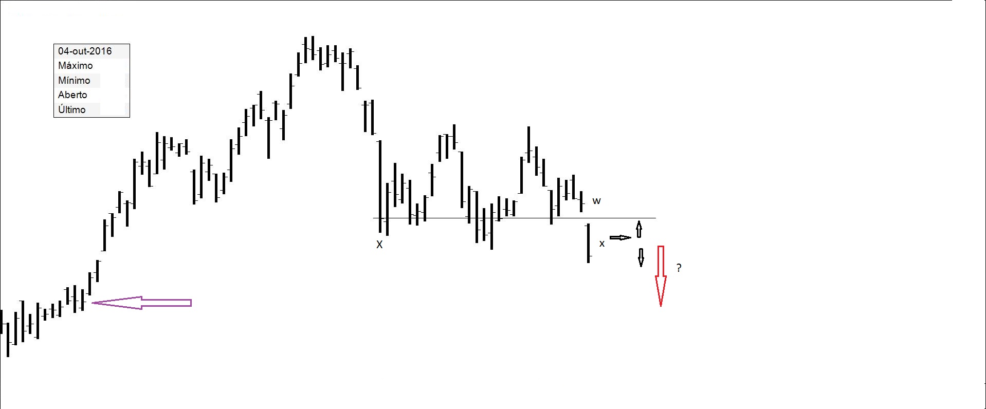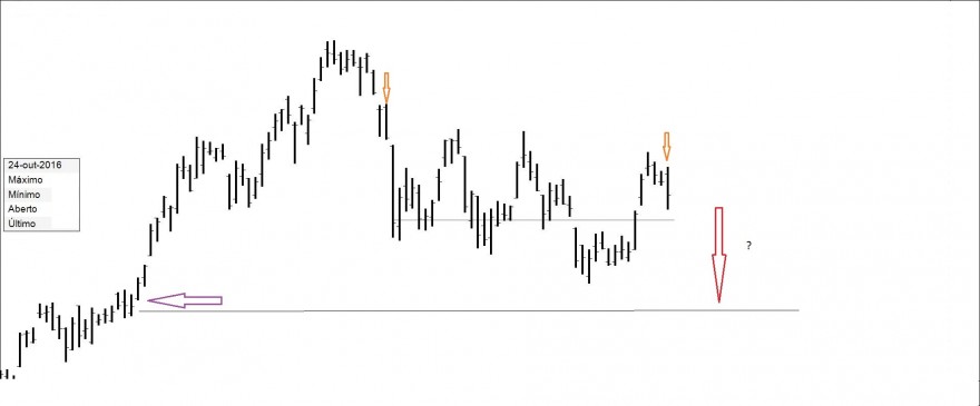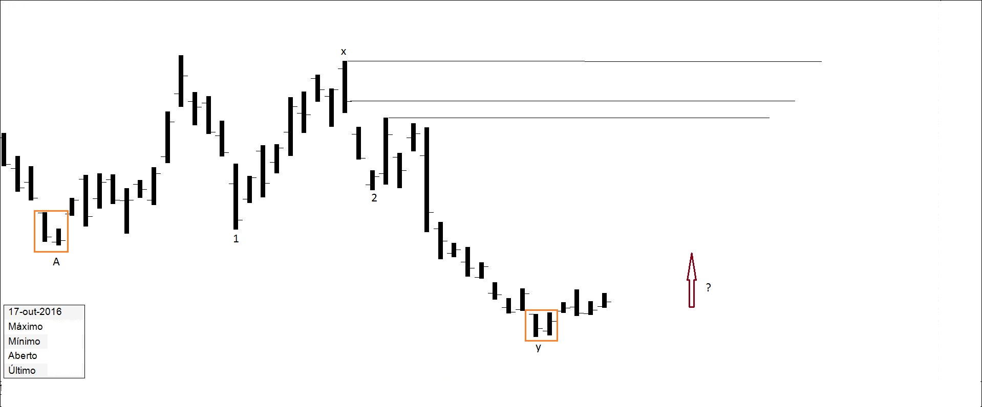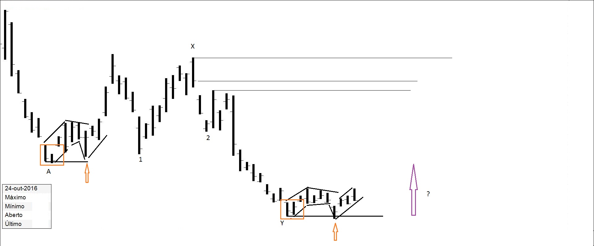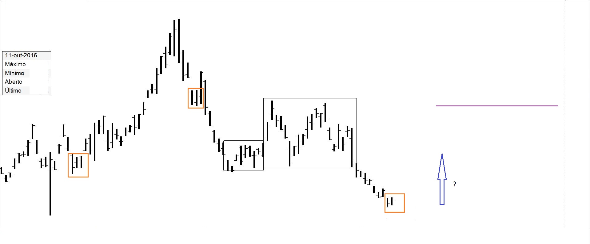 Presente: procurando suporte na resistência. Há quem defenda compras nos suportes.