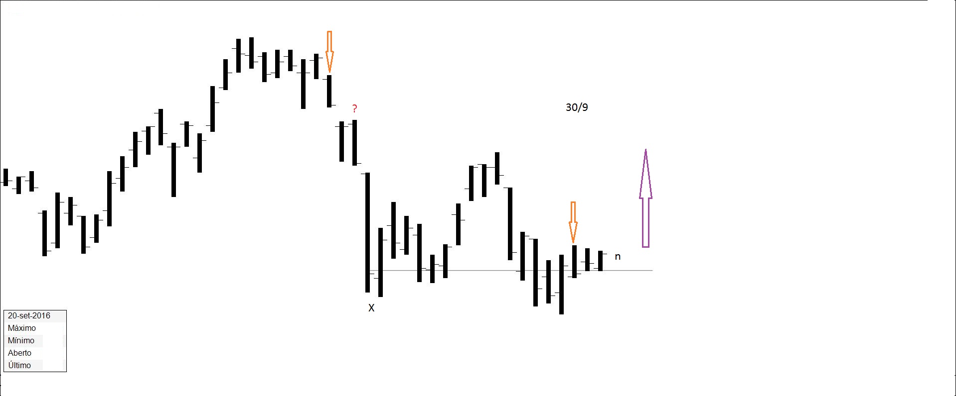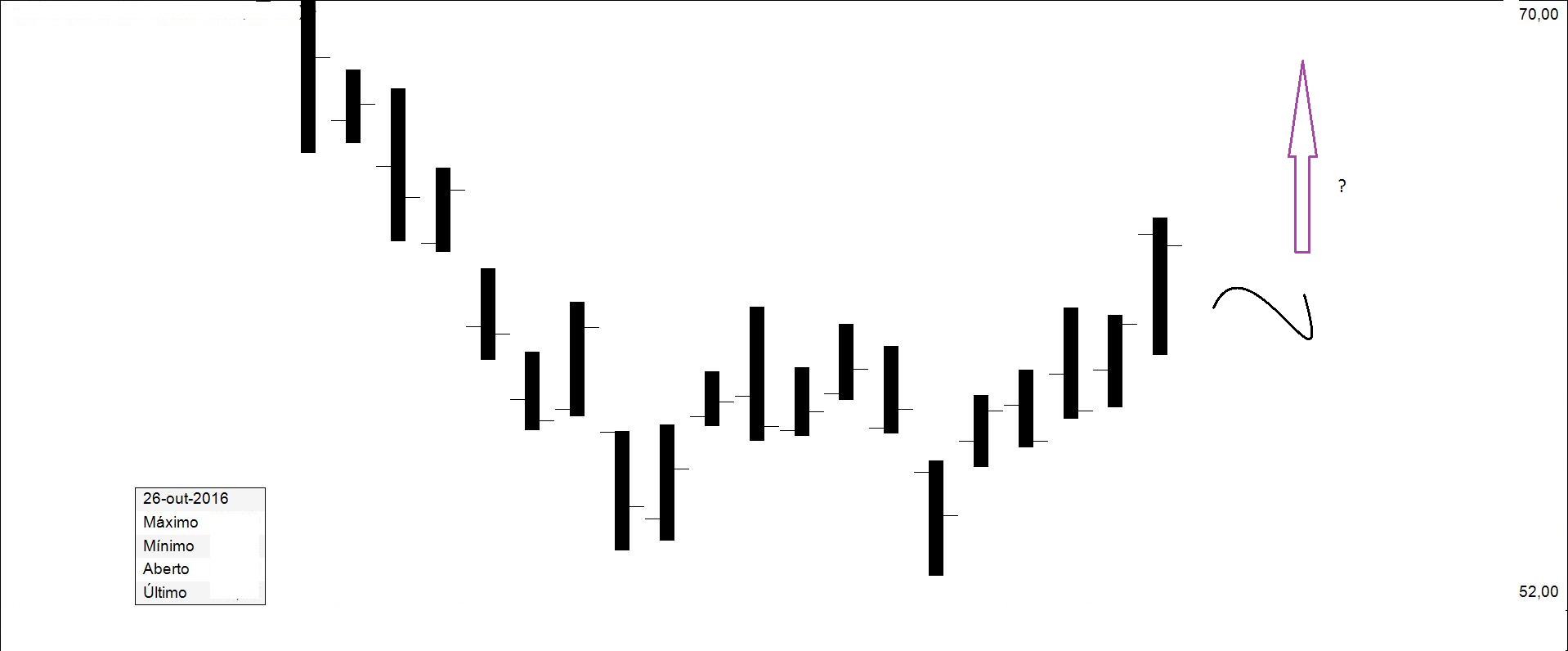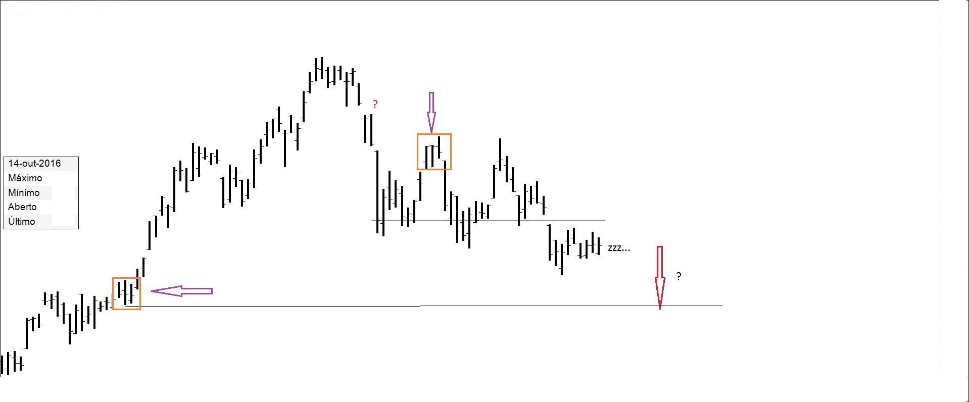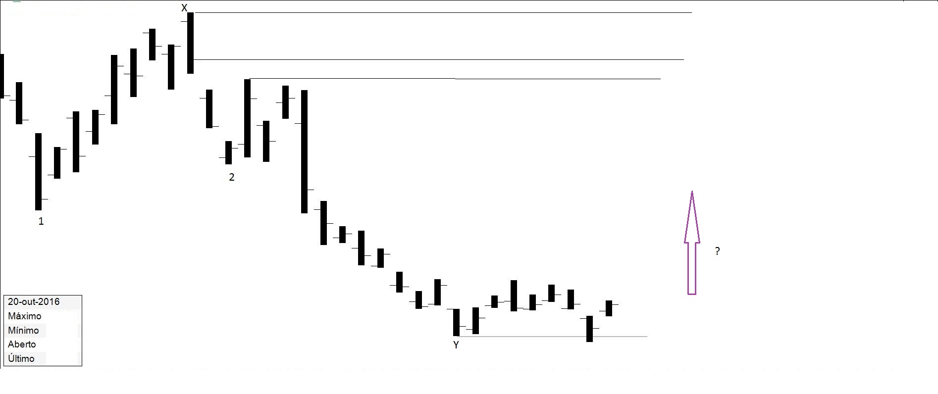 Presente: procurando suporte na resistência. Há quem defenda compras nos suportes.