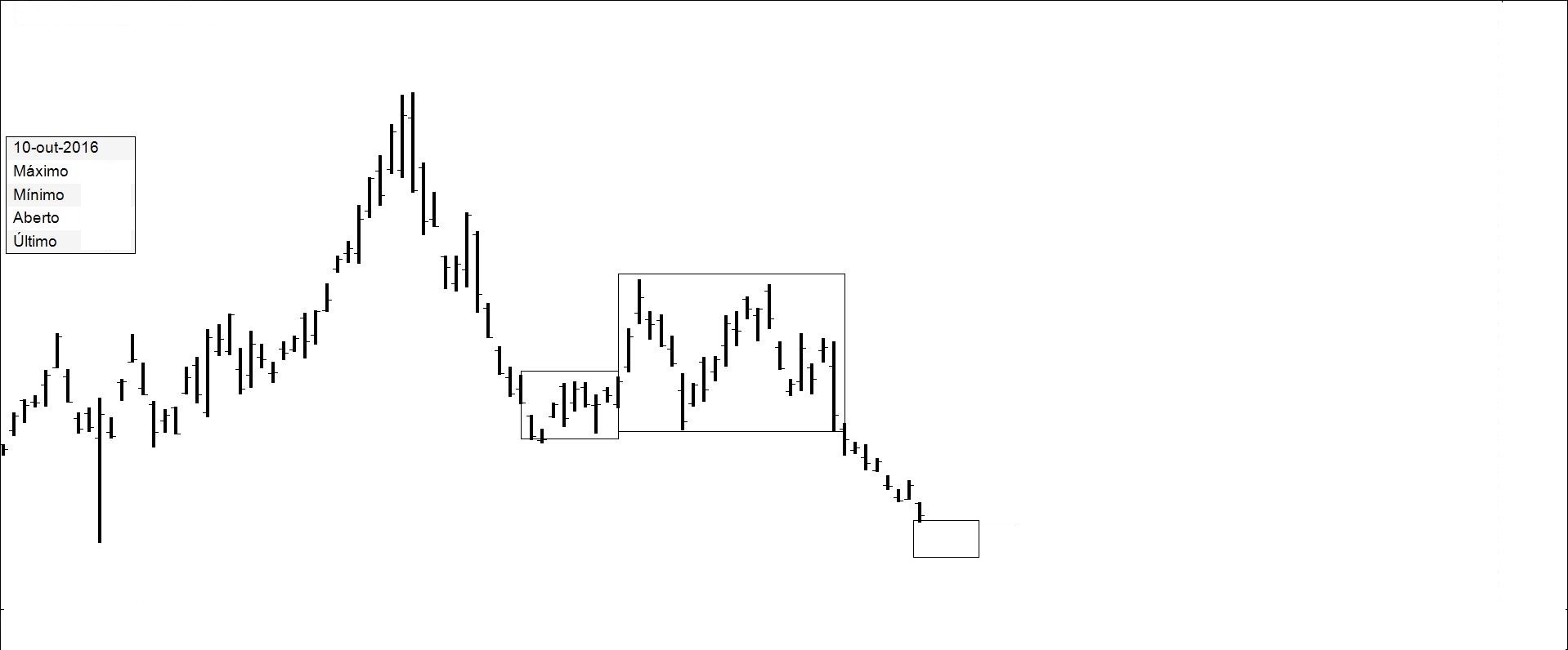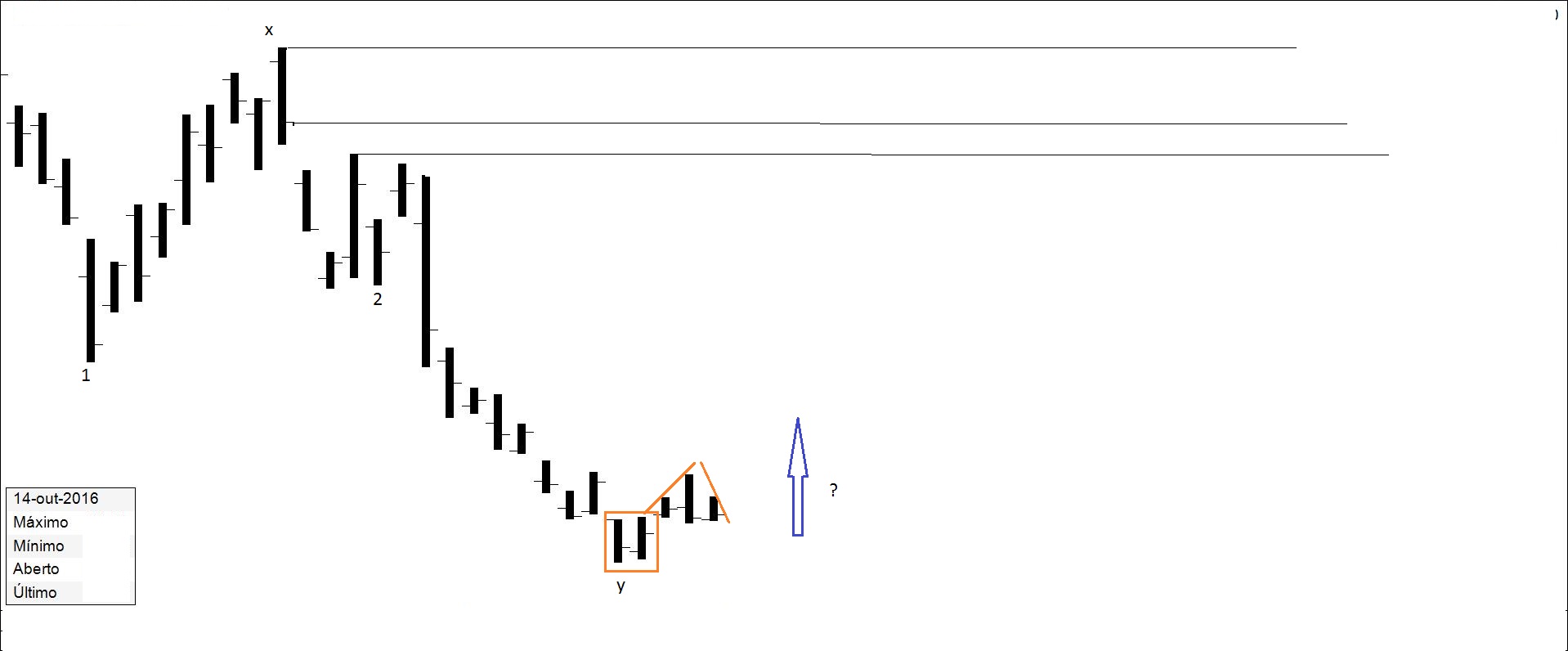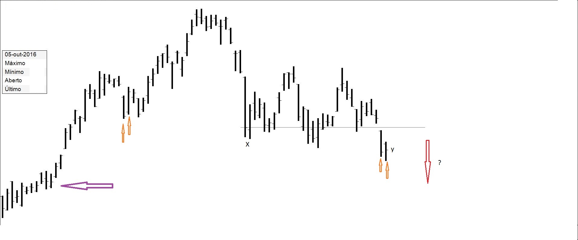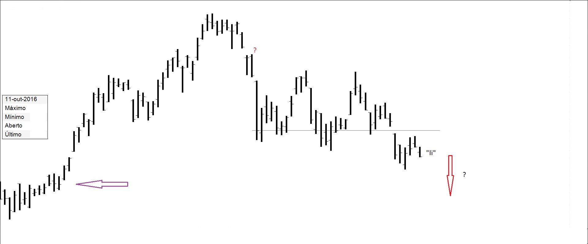 Presente: procurando suporte na resistência. Há quem defenda compras nos suportes.