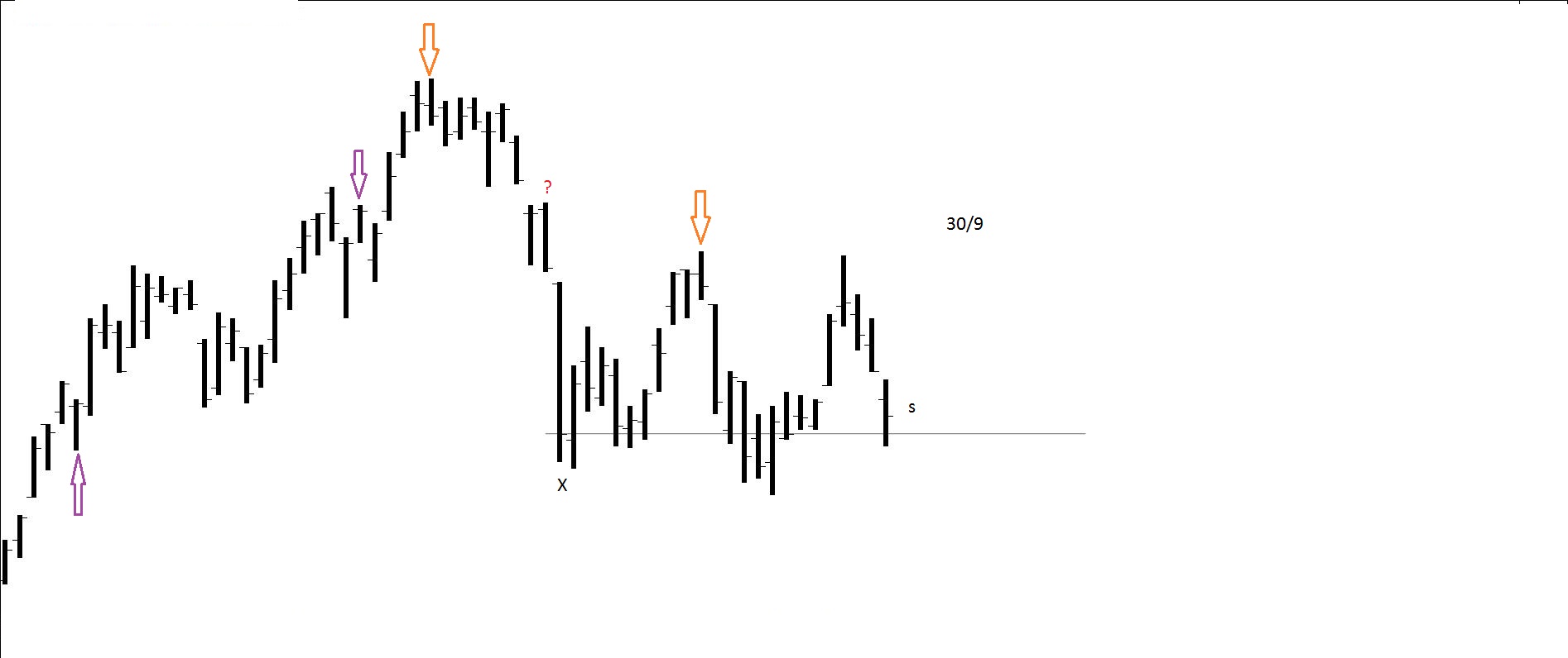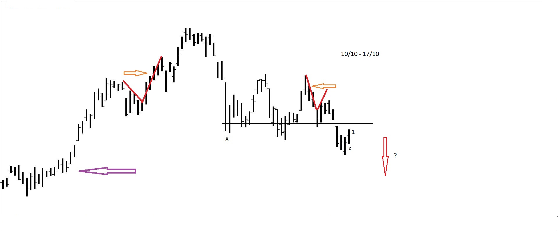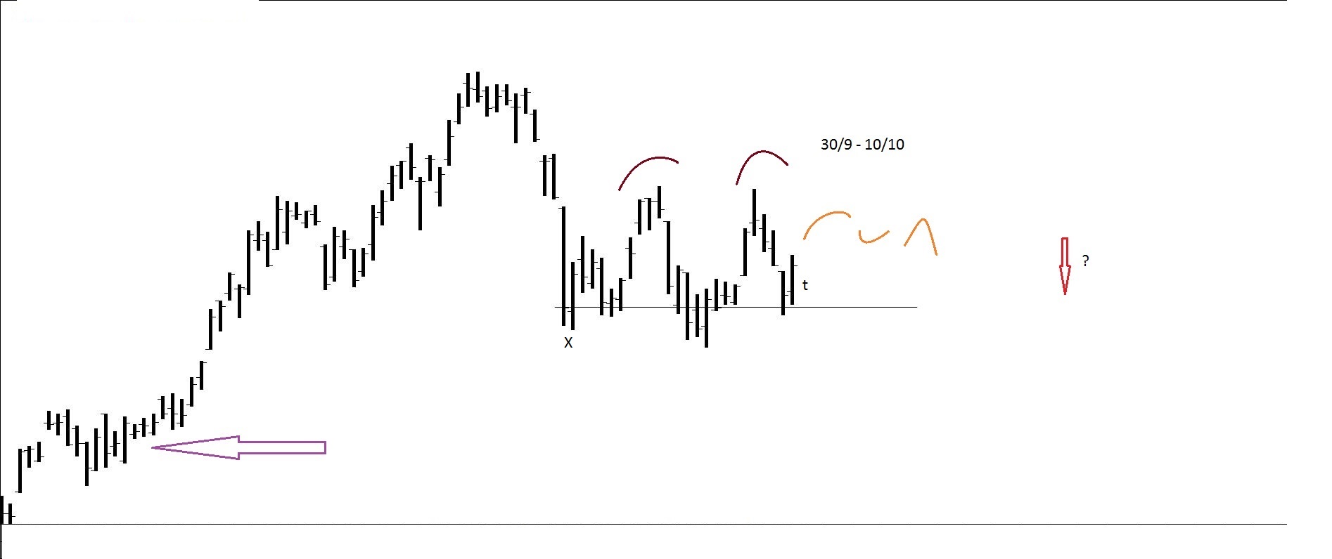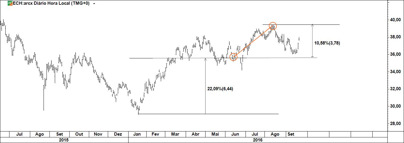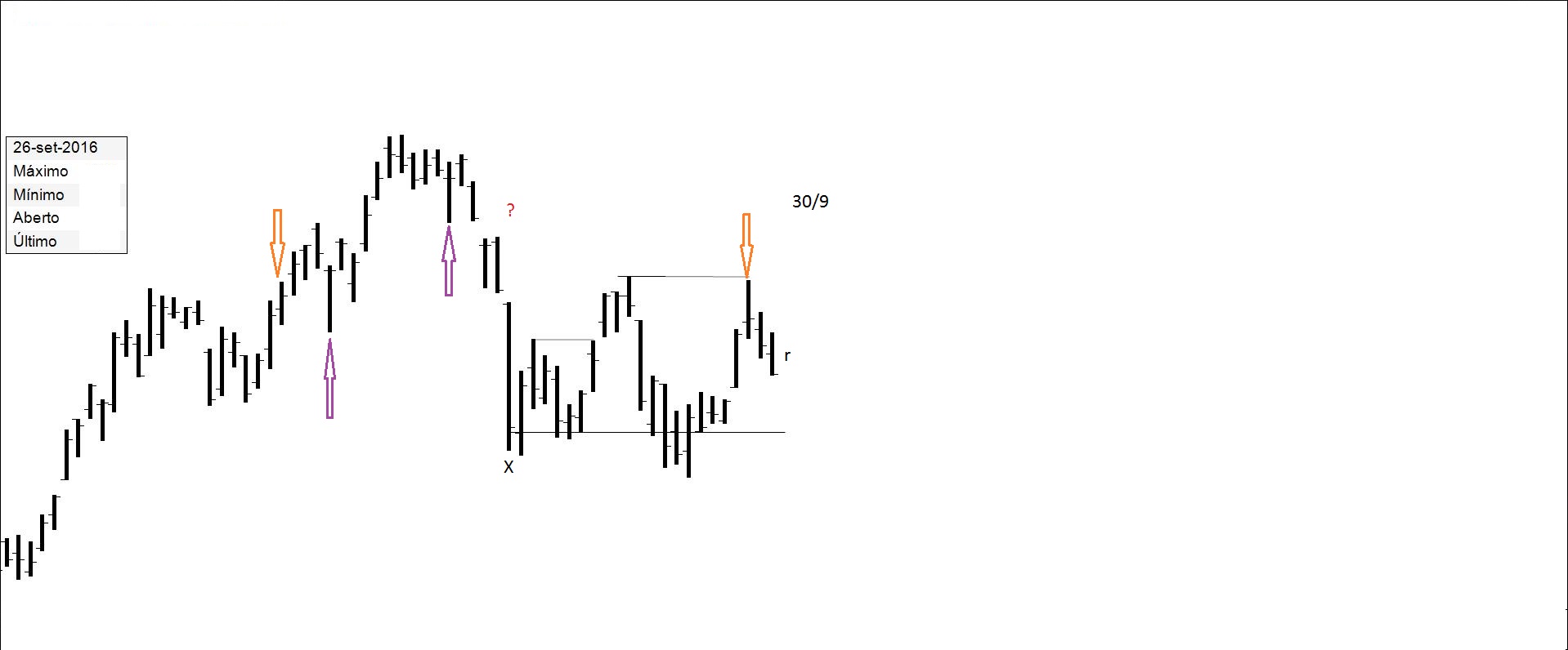 Presente: procurando suporte na resistência. Há quem defenda compras nos suportes.