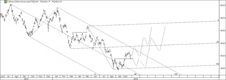 Ainda estou muito tenro nisto dos garfos,mas podes confirmar que essa ideia que descreves não é mais do que início da onda 3, movimento que quase sempre surge após o rompimento / quebra de uma lt seguido de um pivô a direccionar o sentido do movimento, a excepção é quando acontece o tal movimento que julgo ser o que o alquimista denomina de banhada (como só ainda li as primeiras páginas do tópico não afirmo ☺). Mas também sempre do lado do rompimento /quebra da lt.