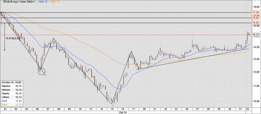 VHC:xase, soma e segue e seria candidata a uma posição longa. Já sabem, se andar 3% prá trás...stop gain.