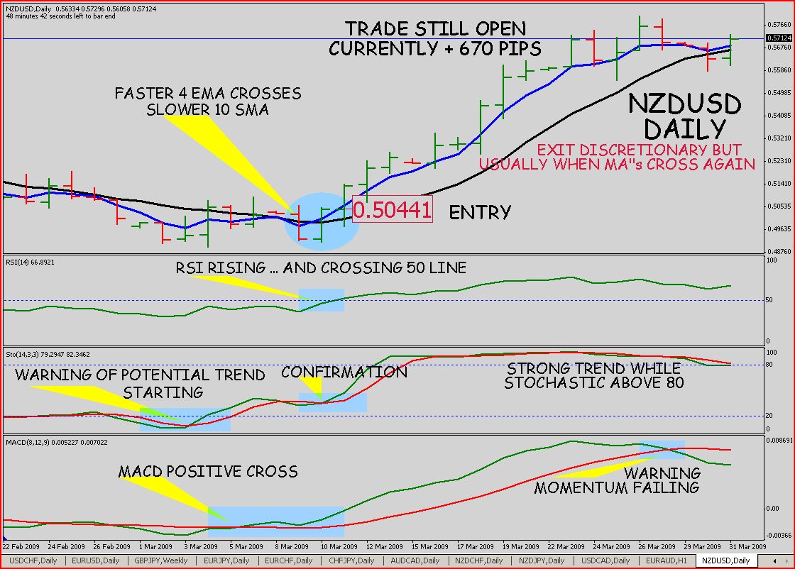 Procuram tendências claras desde o seu início, para posições de 5 dias a 6 meses. O cerne é o momentum do activo e a força que o mesmo denota (Force Index). Apenas tomam posições mediante sinais concretos e negoceiam no upward momentum, fechando posições em pullbacks. Dão prevalência á análise técnica em detrimento da fundamental.
